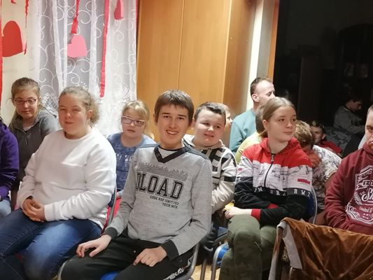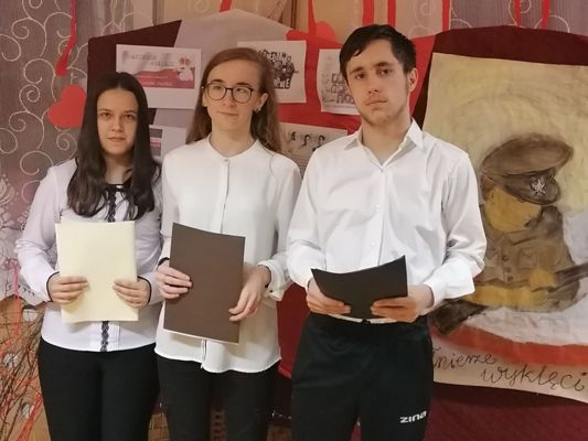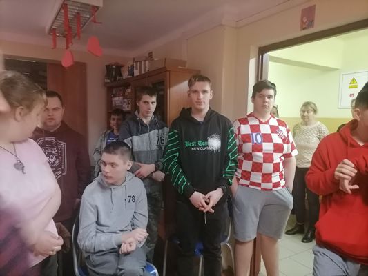 W dniu 3. 03. 2022 r. w Grupach Wychowawczych miał miejsce wieczorek artystyczny poświęcony pamięci Żołnierzy Wyklętych. Spotkanie rozpoczęliśmy przekazaniem wychowankom wiadomości na temat tradycji obchodów Dnia Żołnierzy Wyklętych przypadającego 1. marca każdego roku. Wychowankowie wykonali wcześniej gazetkę symbolizującą pamięć o Wyklętych. Odczytane zostały piękne wiersze oddające hołd poległym żołnierzom i przedstawiające obraz ówczesnych wojennych czasów. Następnie wychowankowie odsłuchali pieśni nagranych w wersji filmowej w wykonaniu bardów i obejrzeli przepiękny materiał filmowy opowiadających o czynach żołnierzy i ich drodze w walce o wolną Polskę. Nawiązaliśmy również do obecnej sytuacji związanej z wojną w Ukrainie. Mówiliśmy o znaczeniu pokoju w świecie i walce wielu ludzi, którzy tracą swoje życie w imię obrony niezależności swojego kraju. Szczególnie położyliśmy nacisk na uświadomienie wychowankom ile Żołnierze Niezłomni, Wyklęci , poświęcili i oddali abyśmy przez ponad 70 lat mogli żyć w pokoju, bezpieczni w swoim pięknym odbudowanym kraju. Spotkanie zakończyliśmy minutą ciszy w celu uczczenia poległych żołnierzy Wyklętych oraz poległych żołnierzy ukraińskich w wojnie trwającej ósmy dzień w Ukrainie.