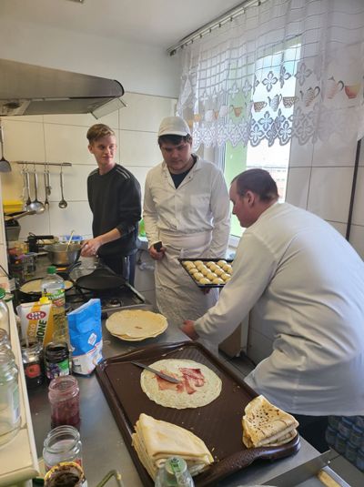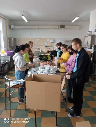 Od 2 tygodni trwa wielka mobilizacja darczyńców skierowana do pogrążonych w wojnie naszych sąsiadów. W naszym powiecie odziennie realizowana jest pomoc uchodźcom z Ukrainy. Wolontariusze, ludzie dobrej woli otworzyli swe serca w niesieniu wsparcia. My również przyłączyliśmy się do akcji Pomoc Ukrainie. W naszej placówce od pierwszych dni przygotowujemy posiłki dla uchodźców, ze szczególną myślą o dzieciach – rówieśnikach naszych uczniów. Są to: naleśniki, kanapki, drożdżówki, rogaliki oraz pożywna zupa. Do przygotowań z wielkim zaangażowaniem włączyli się uczniowie klas branżowej szkoły I stopnia oraz uczniowie szkoły przysposabiającej do pracy. Jesteśmy dumni z pięknej postawy naszej młodzieży.