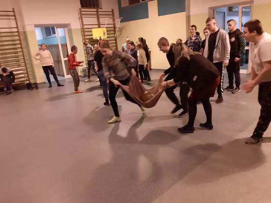 Pierwszy dzień kalendarzowej wiosny powitaliśmy ze społecznością Grup Wychowawczych na sportowo. Młodzież podzielona na zespoły pod kierownictwem kapitanów zespołów rywalizowała w konkurencjach: "Piłka do kapitana", "Piłkarzyki", "Ruchomy kosz", "Strongmani", "Raki". Zawodnicy z ogromnym zaangażowaniem uczestniczyli w zadaniach i zdobywali punkty dla własnych drużyn. W nawiązaniu do tradycji młodzież wykonała Marzanny, które "utopiła" w sposób nieszablonowy pod prysznicem - ekologicznie by nie zaśmiecać rzeki.
