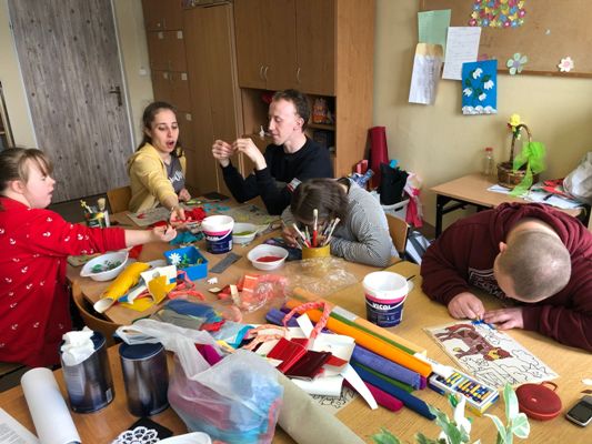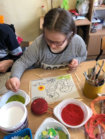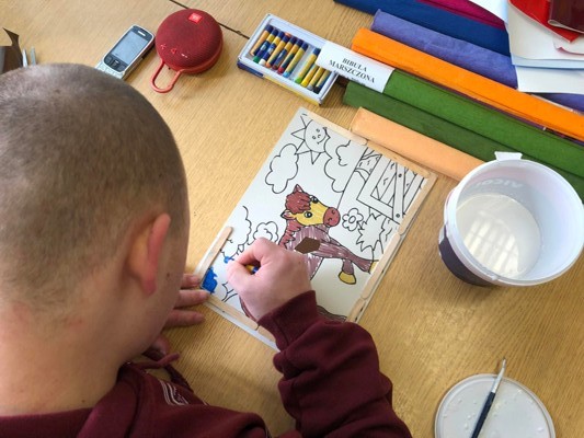 Uczniowie klasy III szkoły przysposabiającej do pracy uczestniczyli w warsztatach plastycznych z elementami stymulacji sensoplastycznej w oparciu o wiersze „Chodzi o to, czy wiesz co to” Marcina Brykczyńskiego. Spotkanie realizowane było w ramach stałej współpracy z panią bibliotekarką Elizą Romańską z Miejskiej Biblioteki Publicznej w Hrubieszowie. Sensoplastyka to sensoryczne podejście do plastyki, poznawanie jej za pomocą wszystkich zmysłów, wprowadza uczniów w świat barw, faktur, zapachów, smaków pobudzając do kreatywnego działania.