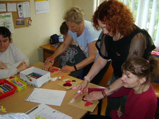 Podczas tych szczególnych zajęć nawiązywano i podtrzymywano kontakt emocjonalny z wychowankami. Zauważano nawet najmniejsze zmiany w poziomie aktywności uczniów. Prowadzona komunikacja odbywała się w formie ruchów, mimiki twarzy, PCS. Doskonalono kanały ekspresji i języka ciała, ćwiczono precyzję ruchów rąk i spostrzegawczości. Przepiękna piosenka pt.: „A ja wolę moja mamę , co ma włosy jak atrament….” w wykonaniu dzieci z pomocą nauczycieli czyniła nastrój jeszcze bardziej podniosłym.