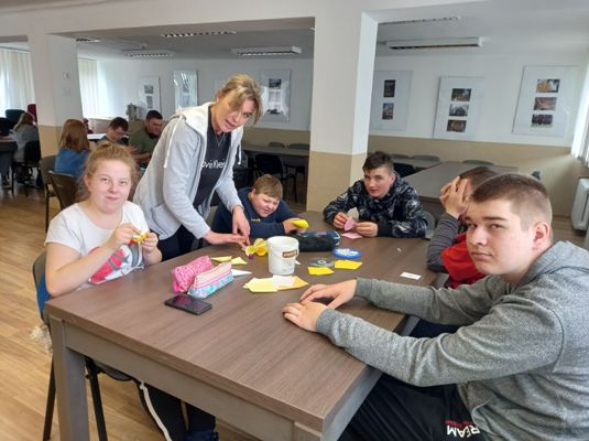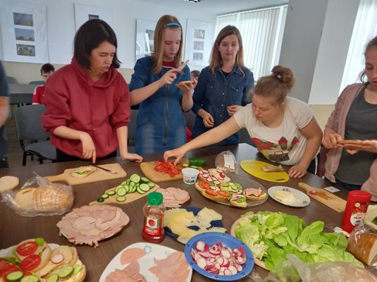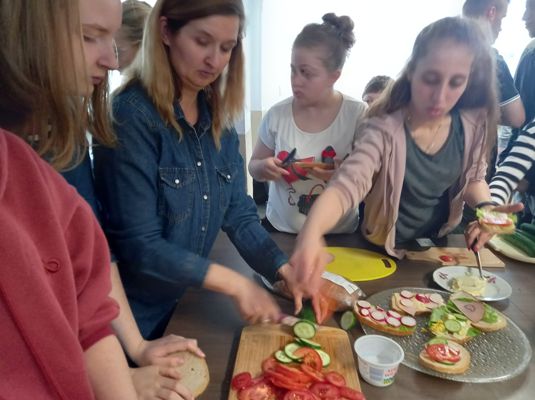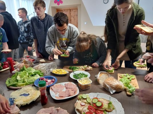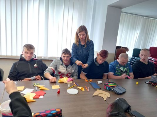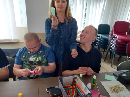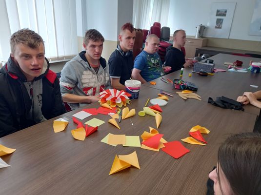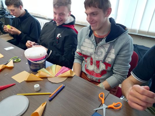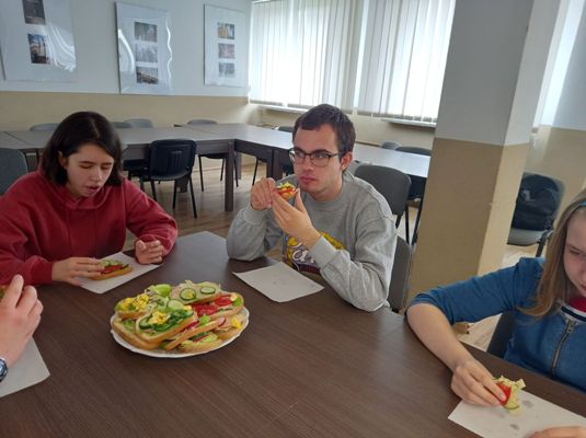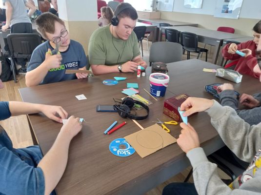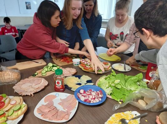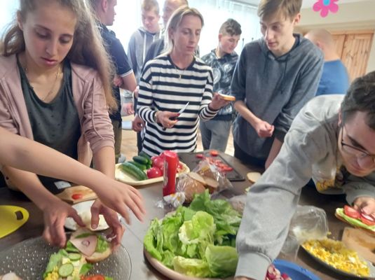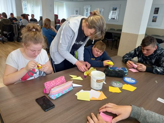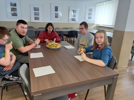 Uczniowie Szkoły Przysposabiającej do Pracy w dniu 30 maja wzięli udział w konkursie "Zrobimy to sami". Konkurs obejmował różne zadania z przysposobienia do pracy, w tym z papieroplastyki, witraży, ogrodnictwa, zajęć kulinarnych i krawieckich. Uczestnicy musieli poradzić sobie z pomalowaniem witraży, zrobieniem gwiazdy z papieru, posadzeniem krzaczków pomidorów do pojemników. Bardziej apetyczną częścią konkursu było wykonanie kanapek z wykorzystaniem wiosennych warzyw, na deser uczniowie piekli gofry i dekorowali je bitą śmietaną i truskawkami. Wszyscy z apetytem spożyli efekty swojej pracy. Celem konkursu było zintegrowanie uczniów wokół wspólnie wykonywanego zadania, ukazanie wielkiej wartości pracy i współdziałania. A najważniejsze że wszyscy przy okazji dobrze się bawili.