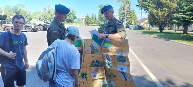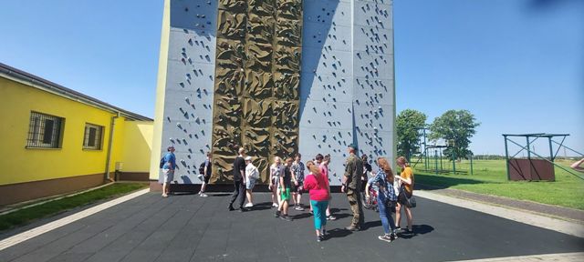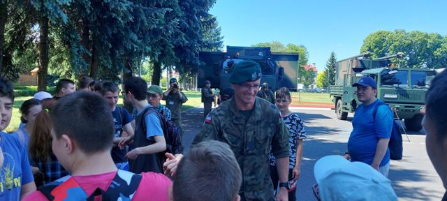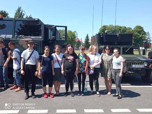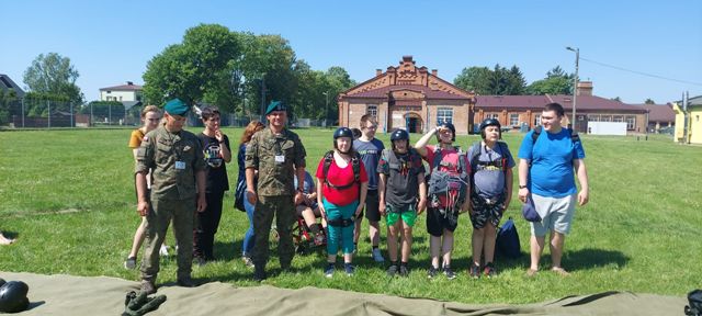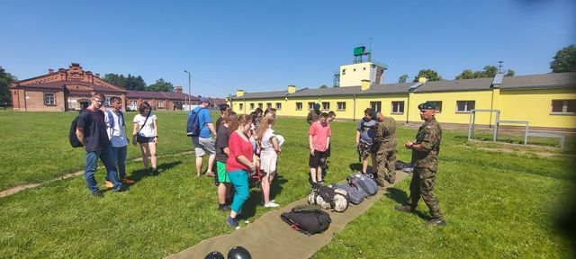 9 czerwca uczniowie Szkoły Branżowej oraz klas Pdp wyruszyli na pieszą wycieczkę do jednostki wojskowej, w której stacjonuje 2 Pułk Rozpoznawczy. Po uzyskaniu pozwolenia na wejście na teren wojskowy, uczniowie rozpoczęli zwiedzanie. Zwiedzali Salę Tradycji, zapoznali się z ciekawymi eksponatami. Uczniowie dowiedzieli się na czym polega służba w pułku rozpoznawczym, dowiedzieli się jakie są rodzaje i zastosowanie spadochronów, mogli przymierzyć hełm i spadochrony, dowiedzieli się jak wygląda szkolenie spadochroniarzy i mogli wypróbować swoje siły. Na placu apelowym uczniowie podziwiali pojazdy wojskowe. Mogli uzyskać informacje o sprzęcie, posiedzieć w wojskowym pojeździe. W ramach podziękowań młodzież wręczyła oprowadzającym własnoręcznie wykonane prace.