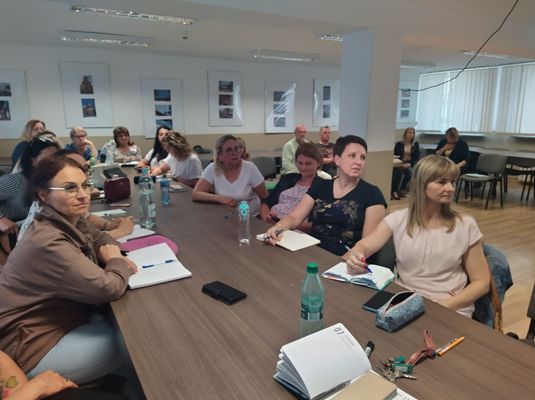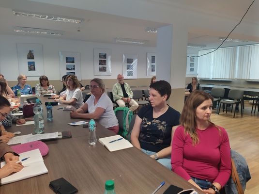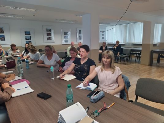 Realizując projekt pn. "W drogę po rozwój - mobilność kadry PZPSW w Hrubieszowie" (2021-1-PL01-KA122-SCH-000015229), który jest współfinansowany przez Unię Europejską, w ramach wsparcia przygotowawczego grupa nauczycieli i pracowników naszego ośrodka uczestniczy w zajęciach z języka portugalskiego prowadzonych przez pana Adama Stefaniaka. To kolejny etap przygotowań do wakacyjnej podróży do Portugalii. Projekt stawia na rozwój kompetencji językowych również w zakresie poznania podstaw języka portugalskiego.