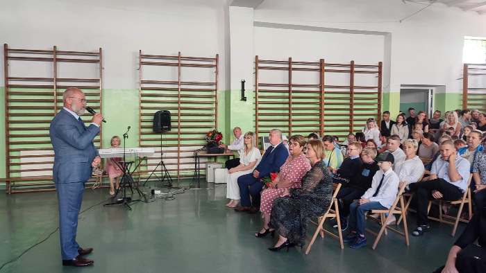 Naszą skromną uroczystość uświetnił swoją obecnością Wicestarosta Powiatu Hrubieszowskiego pan Marek Kata. Swoim wystąpieniem zainspirował nas do dalszego, nieustającego wysiłku by kształcić i wychowywać dzieci i młodzież. Kochani Uczniowie życzymy Wam spełnienia edukacyjnych celów, wiary we własne możliwości. Niech rozpoczęty rok szkolny przyniesie ze sobą nowe, ciekawe doświadczenia, a szkoła będzie bezpiecznym miejscem budowania relacji oraz rozwijania zainteresowań i pasji.