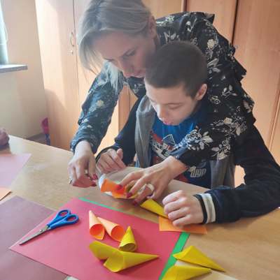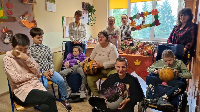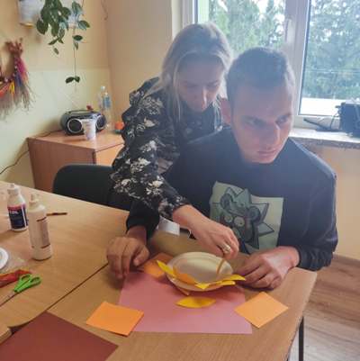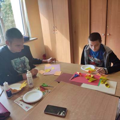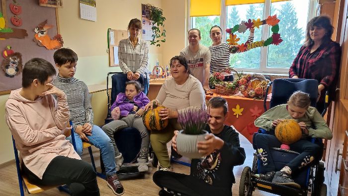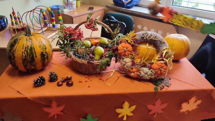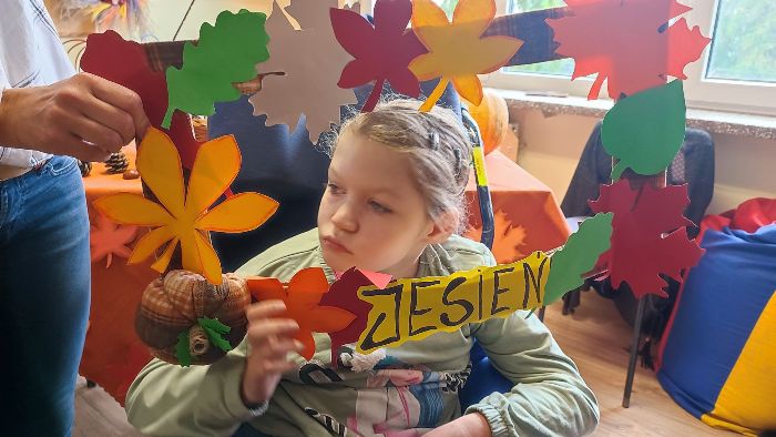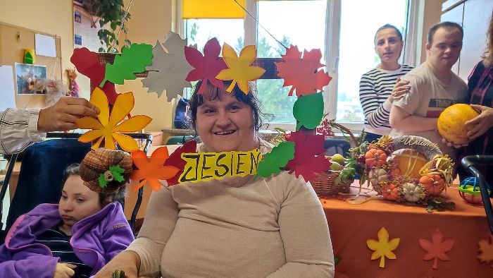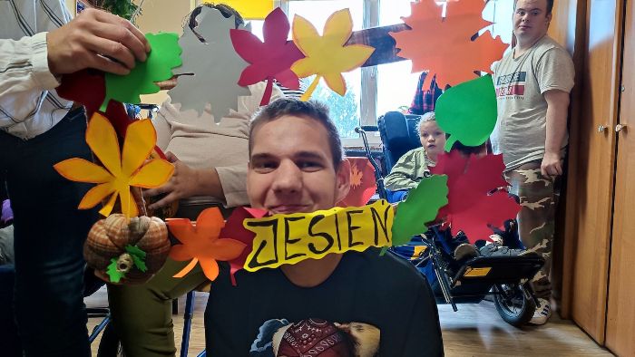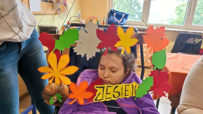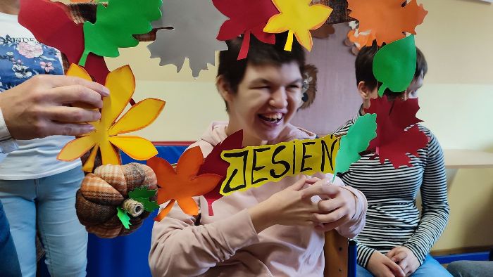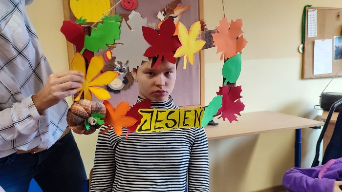 Do zespołów rewalidacyjno – wychowawczych zawitała jesień. Uczniowie wraz ze swoimi nauczycielami rozmawiają o darach jesieni. W salach pojawiły się jesienne kąciki przyrodnicze, w których są kasztany, żołędzie, owoce, warzywa i liście. Ta piękna pora roku została powitana w wyjątkowy sposób. Uczniowie tworzyli kolorowe prace plastyczne. Zostali zaproszeni do sesji w jesiennym klimacie. Po minach widać, że bardzo polubili jesień, jej skarby oraz kolory.