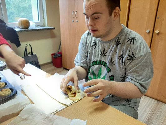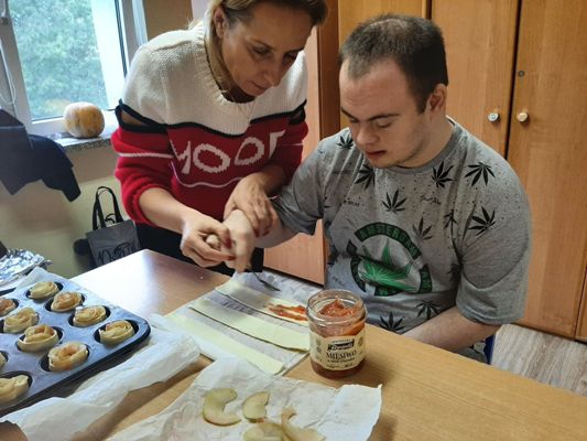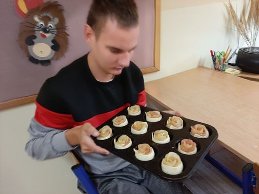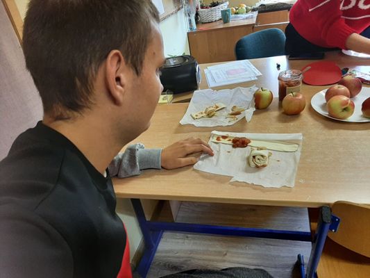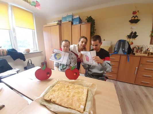 Jabłko to najprawdopodobniej najpopularniejszy owoc na świecie, wpływ na to ma nie tylko smak, różnorodność odmian, ale i bogata symbolika. 28 września 2022 r. uczniowie zespołu rewalidacyjno - wychowawczego obchodzili Światowy Dzień Jabłka. Uzupełnili wiedzę na temat tego pysznego owocu, wykonali piękne prace plastyczne oraz własnoręcznie przygotowali kruche ciasto z jabłkami. Wyszłao przepyszne: słodziutkie, pachnące wanilią i cynamonem. Aromat i smak umilił wszystkim ten pochmurny, jesienny dzień.