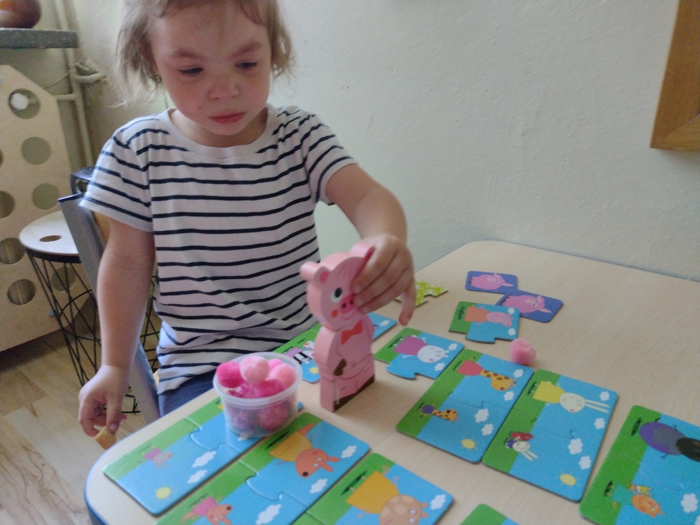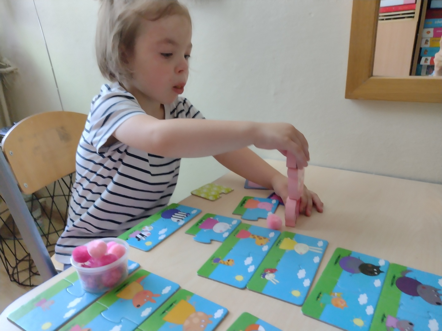 Terapia z dziećmi przebiegała bardzo efektywnie, w przyjemnej atmosferze. Beneficjenci aktywnie uczestniczyli w zajęciach udało się zrealizować 100 % zajęć. Chętnie brali udział w proponowanych aktywnościach, zabawach. Duża popularnością wśród uczestników cieszyły się zajęcia z wykorzystaniem aktywnej ściany, ćwiczenia z rekwizytami, układanki, a nawet typowo motoryczne wycinanie, rysowanie. W przypadku jednego dziecka w terapii zastosowano responsywną metodę, by eliminować lęk przed nowym materiałem dobierano rekwizyty zgodnie z dziecka potrzebami. Inny beneficjent początkowo był podczas zajęć z mamą by przełamać jego lęk separacyjny.