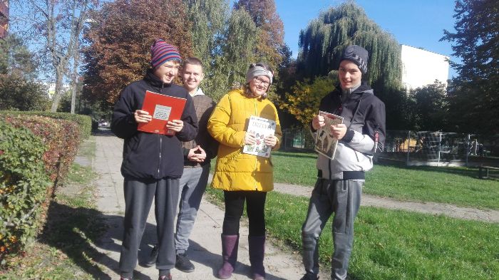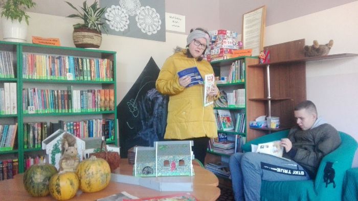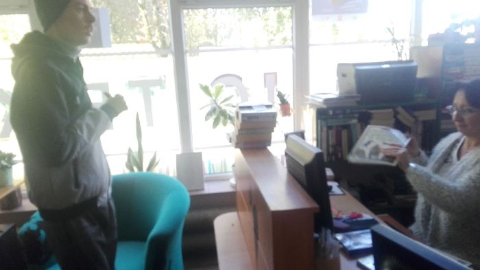 W ramach kontynuacji współpracy z pracownikami Miejskiej Biblioteki Publicznej w Hrubieszowie, filią "Zielony Kot" uczniowie klasy VIII udali się z książkami do swojej ulubionej biblioteki. Każdy z uczniów znalazł w zbiorach bibliotecznych coś interesującego dla siebie. Uczniowie samodzielnie dokonywali obsługi zgodnie z zasadami zachorowania się bibliotece i czytelni. Wszyscy powrócili zadowoleni do szkoły korzystając jednocześnie ze słonecznego, jesiennego spaceru.