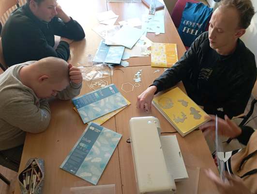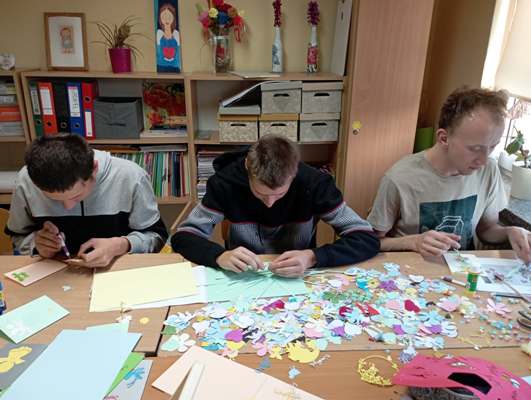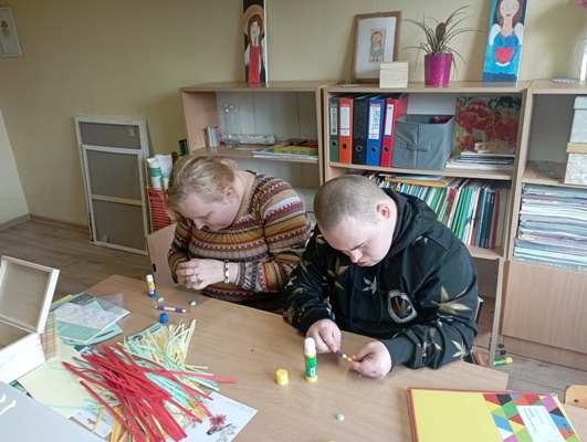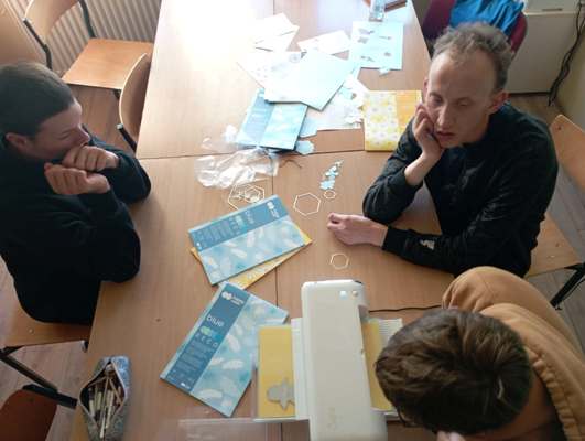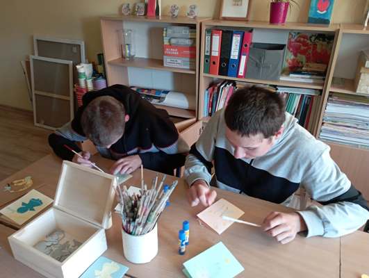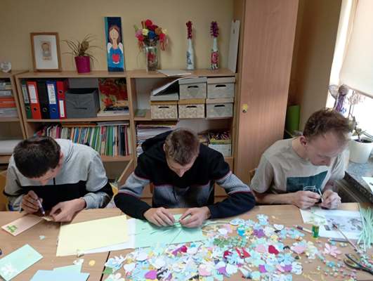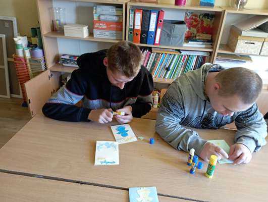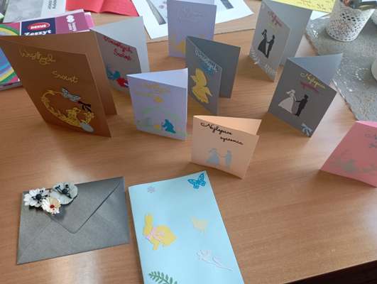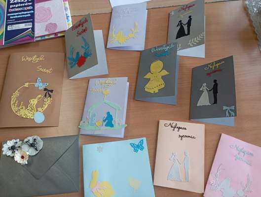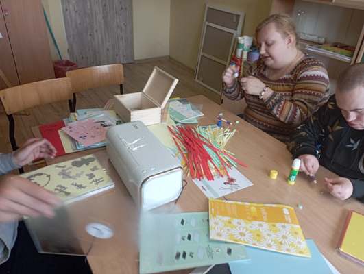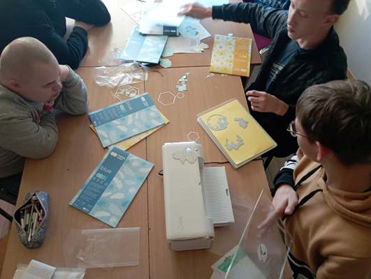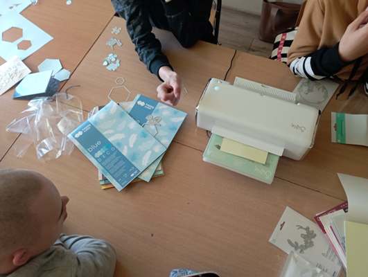 Za nami połowa zajęć z Bajkowego Quillingu. Zajęcia realizowane są w ramach projektu organizowanego przez Stowarzyszenie „Mamy Siebie” dofinansowanego przez Województwo Lubelskie ze środków Państwowego Funduszu Rehabilitacji Osób Niepełnosprawnych z Regionalnego Ośrodka Polityki Społecznej w Lublinie. Uczestnicy zostali zapoznani z właściwościami papieru oraz jego praktycznym wykorzystywaniem. Nauczyli się obsługiwania specjalistycznych sprzętów do wycinania i wykrajania papieru. Poprzez wspólne zajęcia nauczyli się nowych technik ozdabiania kartek i pudełek. Razem tworzą piękne i niepowtarzalne kartki okolicznościowe, które po skończonym projekcie zaprezentują na wystawie przygotowanej w szkole.
