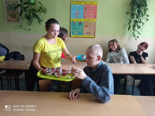 Młodzież w tym dniu podzieliła się „dobrym słowem” z dodatkiem słodkiego muffina. Uczniowie szkoły branżowej przygotowali przepyszne muffinki i udekorowali je słowami, które mają moc pozytywnych emocji ! Po szkole unosił się zapach wanilii i czekolady. Mamy nadzieję, że wszystkim poczęstowanym łasuchom poprawił się humor i doznali odrobiny przyjemności.