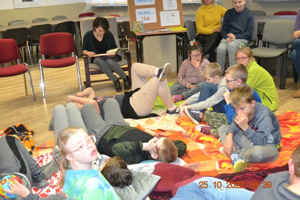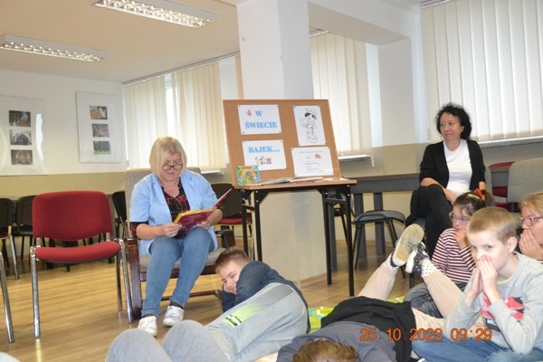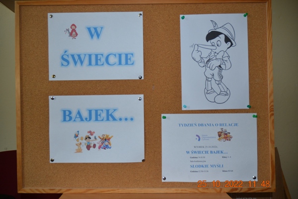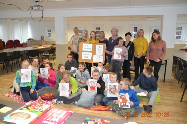 W tygodniu Dobrych Relacji nie zabrakło miejsca na spotkanie z książką. Czytanie bajek zdecydowanie wpływa na dobry nastrój, a w dobrym humorze nawiązujemy tylko pozytywne relacje z innymi. Dodatkowo bohaterowie bajek mają nam do przekazania dużo mądrości, z których warto skorzystać. We wtorek najmłodsi uczniowie naszej szkoły mieli okazję posłuchać pięknych bajek czytanych przez wyjątkowych lektorów, wśród których znaleźli się: pani dyrektor Katarzyna Lachowska, pani wicedyrektor Edyta Targońska, pani pielęgniarka Dorota Kobielarz, pani Agnieszka Kozicka, pani Monika Maksymiuk. Panie zabrały dzieci w baśniowy świat, pełen przygód i barwnych opowieści. Dzieci podjęły również twórcze działanie i kolorowały postacie z bajek. Tak maluchom upłynął drugi dzień w dobrych relacjach.