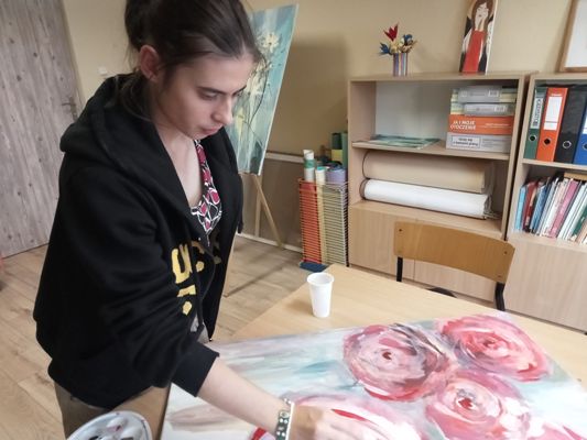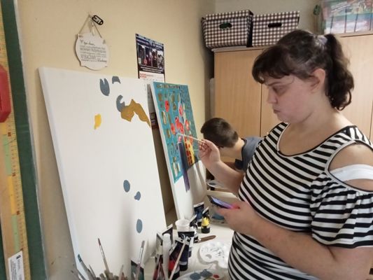 W naszym ośrodku trwają warsztaty malarskie "Terapia przez sztukę". Zajęcia realizowane są w ramach projektu organizowanego przez Stowarzyszenie „Mamy Siebie” dofinansowanego przez Województwo Lubelskie ze środków Państwowego Funduszu Rehabilitacji Osób Niepełnosprawnych z Regionalnego Ośrodka Polityki Społecznej w Lublinie. Warsztaty z elementami arteterapii to bardzo skuteczne narzędzie pozwalające na pracę nad emocjami. Zajęcia wzbogacają wrażliwość estetyczną uczestników, rozwijają zainteresowania oraz usprawniają zaburzoną motorykę. Warsztaty malarskie pozwolą na wykorzystanie sztuki w celach leczniczych i stymulujących rozwój uczestnika. Terapia przez sztukę i swobodne działania skierowane są do dzieci jako forma aktywizująca bez względu na poziom wiekowy.