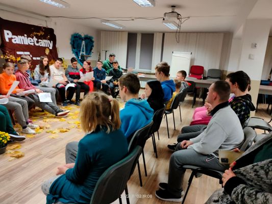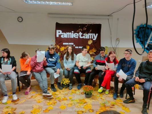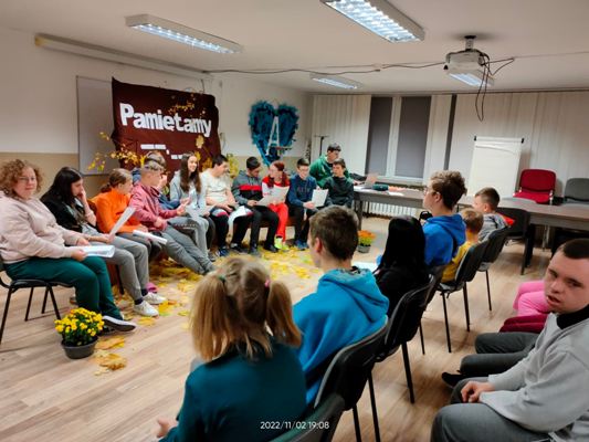 W dniu 02.11.2022 r. wychowankowie Grup Wychowawczych uczestniczyli w wieczorku literacko muzycznym związanym z 2 listopada. Tego dnia obchodzimy święto, które jest ustawione ku czci tych, których już z nami nie ma. Jest to czas na wspominanie zmarłych. Oficjalną nazwą tych obchodów są Zaduszki. Zaduszki zostały wprowadzone do kalendarza liturgicznego i rozpowszechnione w Kościele rzymskim w 1311 roku. Natomiast w Polsce pierwsze wzmianki o tym święcie pojawiły się na początku XIV wieku. Aby przybliżyć znaczenie tego święta wszystkim uczestnikom cześć wychowanków przedstawiło wiersze związane z ulotnością ludzkiego życia, tęsknotą za najbliższymi którzy odeszli. Uczestnikom w trakcie wieczorku towarzyszyła muzyka, która wywoływała w słuchaczach zadumę, składania do zatrzymania się w pędzącym trybie życie i skupieniu się na najbliższych, którzy już odeszli a powinni zawsze być w naszej pamięci i sercach.