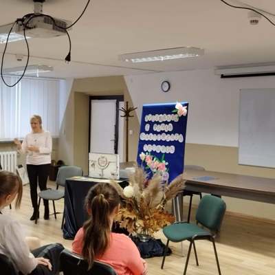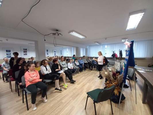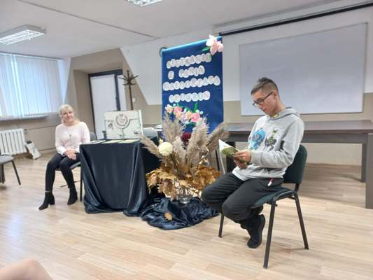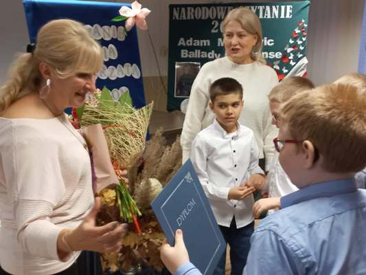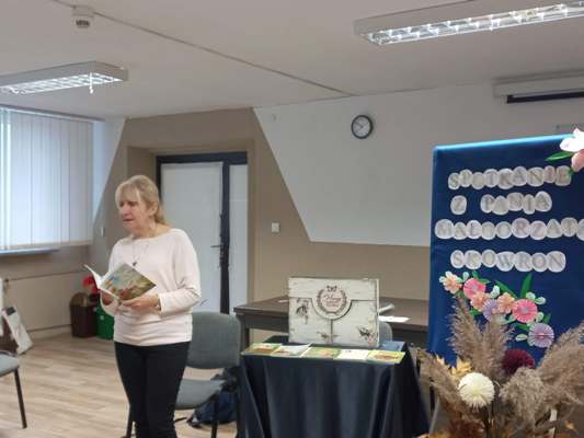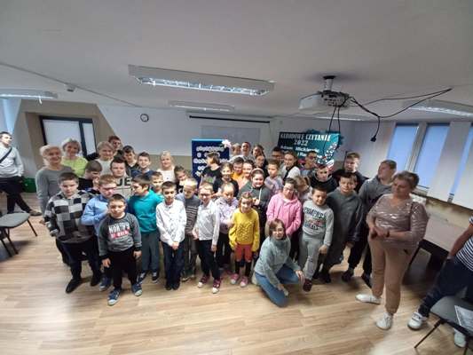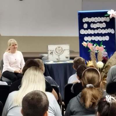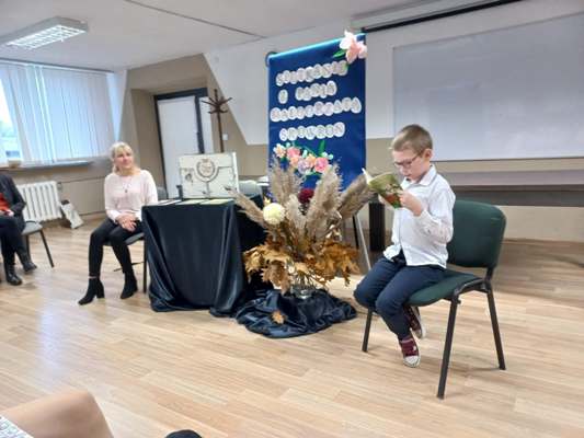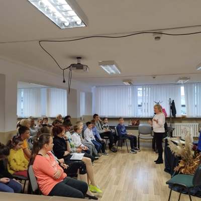 6 listopada w naszej szkole odbyło się spotkanie z panią Małgorzatą Skowron, autorką książek dla dzieci. Nasi uczniowie przygotowali piękne czytanie wybranych utworów. Swoją interpretację przedstawiła młodzież oraz dzieci z 2. klasy - uczestnicy projektu "Bajka uczy, bawi, inspiruje...", dla których przygotowanie spotkania było jednym z zaplanowanych zadań. Pani Małgorzata Skowron w bardzo ciekawy sposób przybliżyła uczniom warsztat swojej pracy, odpowiadała na liczne pytania, przeczytała kilka utworów i zaprezentowała przygotowane do nich ilustracje. Uczestnicy spotkania mieli okazję wykazać się umiejętnością tworzenia rymów i zaśpiewać wspólnie jeden z wierszy pani Małgorzaty. Wszystkie utwory wzbudzały zainteresowanie i spotkały się z żywym odbiorem. Dzieci pokochały autorkę i jej twórczość. Czekamy na kolejne spotkania.
