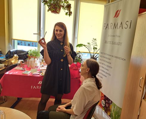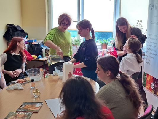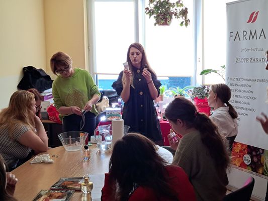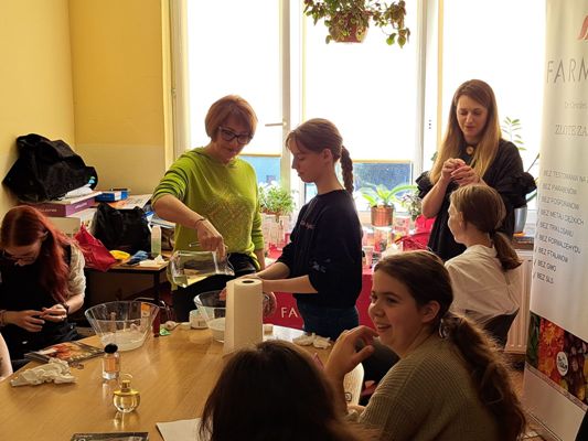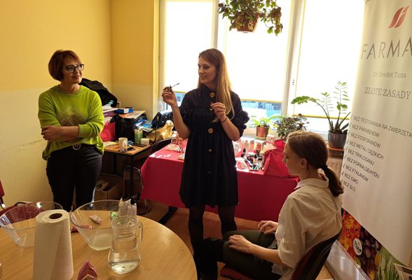 W dniu 9 listopada 2022 r. uczniowie Szkoły Branżowej I stopnia uczestniczyli w warsztatach kosmetycznych Firmy Farmasi. Spotkanie poprowadziły panie Jolanta Markiewicz i Małgorzata Błacha. Młodzież miała możliwość poznać różnego rodzaju zapachy kobiece i męskie, a także produkty pielęgnacyjne do twarzy i ciała. Uczniowie weszli w tajniki prawidłowego dbania o swoją cerę. Poznali produkty pielęgnacyjne, które przywracają skórze miękkość i odpowiedni poziom nawilżenia skóry. Kolejnym punktem spotkania było wprowadzenie w historię, tajniki i pielęgnację powstawania subtelnego makijażu. Warsztaty były bardzo pouczające i kreatywne za co bardzo serdecznie dziękujemy Paniom.