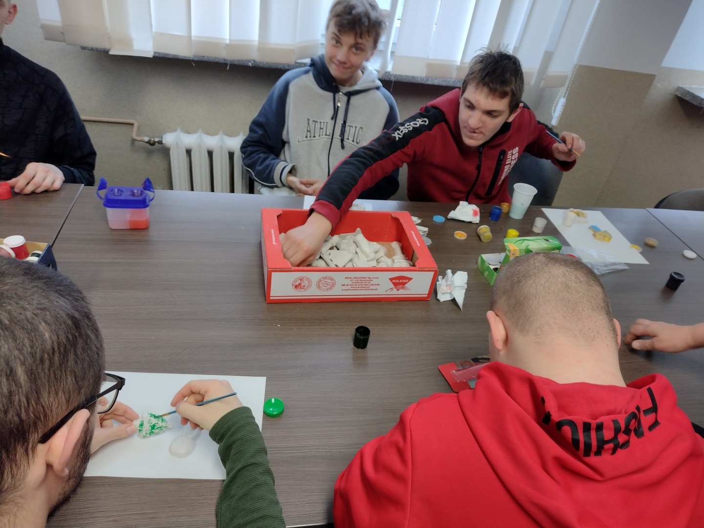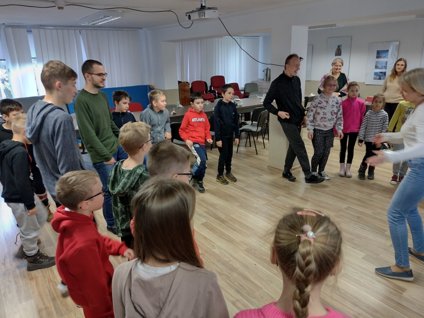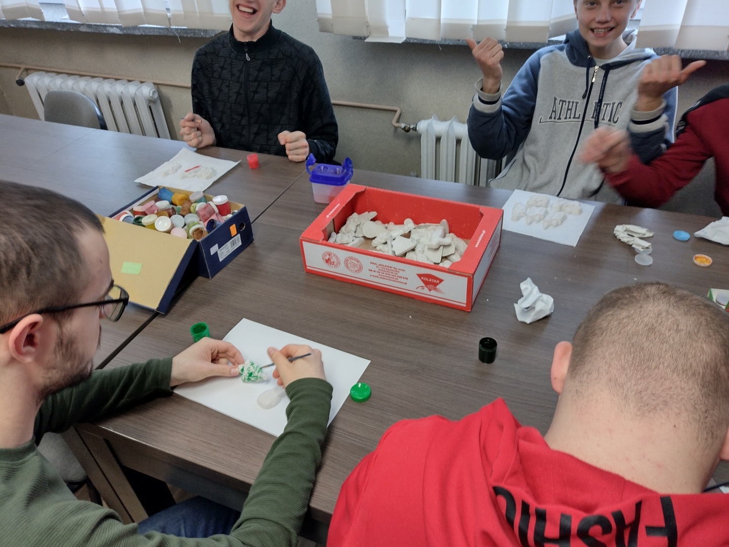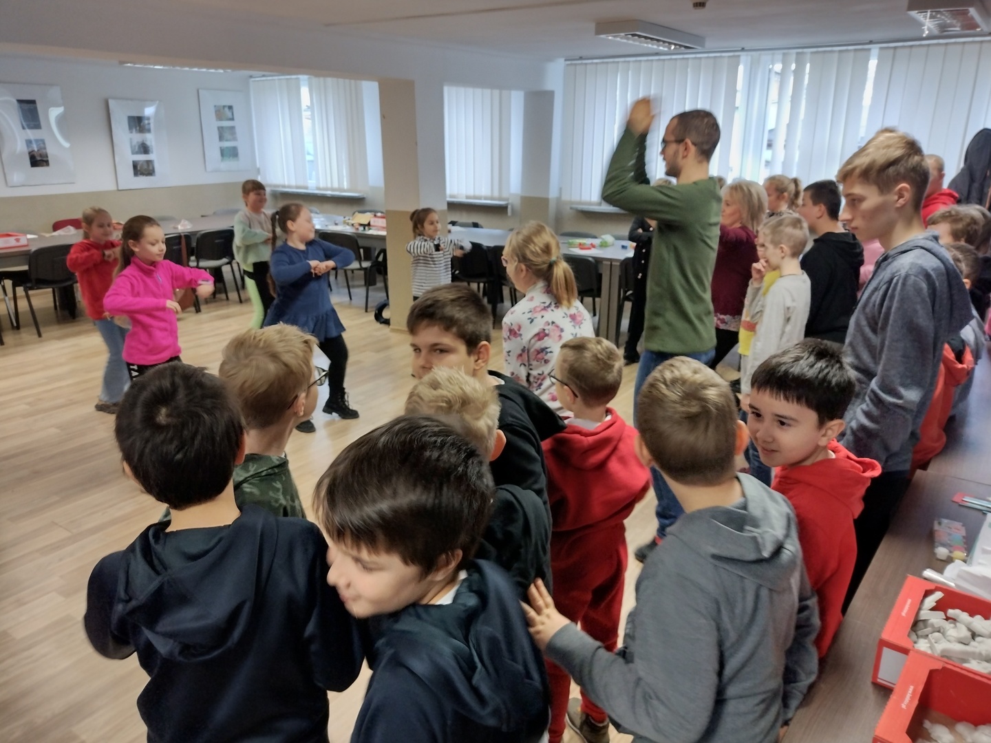 Co może powstać z połączenia gipsu i tańca, wspaniałe zajęcia integracyjne? Dzięki wiedzy i doświadczeniu jakie zdobyli nauczyciele podczas wyjazdu do Portugalii w dniu 22.11.2022 r. na terenie naszego ośrodka odbyły się zajęcia integracyjne z elementami biodanzy we współpracy z uczniami ze Szkoły Podstawowej Nr 1 im. Bolesława Prusa w Hrubieszowie. Tematem przewodnim zajęć był kolor, dźwięk i taniec. W trakcie zajęć uczestnicy mieli możliwość pomalowania figurek gipsowych o tematyce zbliżających się świąt. Figurki, które sprawiały najwięcej radości uczestnikom przedstawiały pingwiny, bałwanki, prezenty świąteczne oraz aniołki, które cieszyły się największym zainteresowaniem uczniów biorących udział w tej części zajęć. W dalszej części zajęć wszyscy uczestnicy mieli możliwość zapoznania się z układem tanecznym przygotowanym przez nauczyciela naszej placówki. Uśmiech na twarzach uczestników jest najlepszym dowodem, że zajęcia odniosły zaplanowany cel i są planowane kolejne wspólne warsztaty integracyjne. Zajęcia były realizowane w ramach projektu „W drogę po rozwój – mobilność kadry PZPSW w Hrubieszowie” nr projektu 2021-1-PL01-KA122-SCH-000015229, który jest realizowany ze środków Unii Europejskiej w ramach Programu Erasmus+ „W krainie koloru, dźwięku i tańca”.