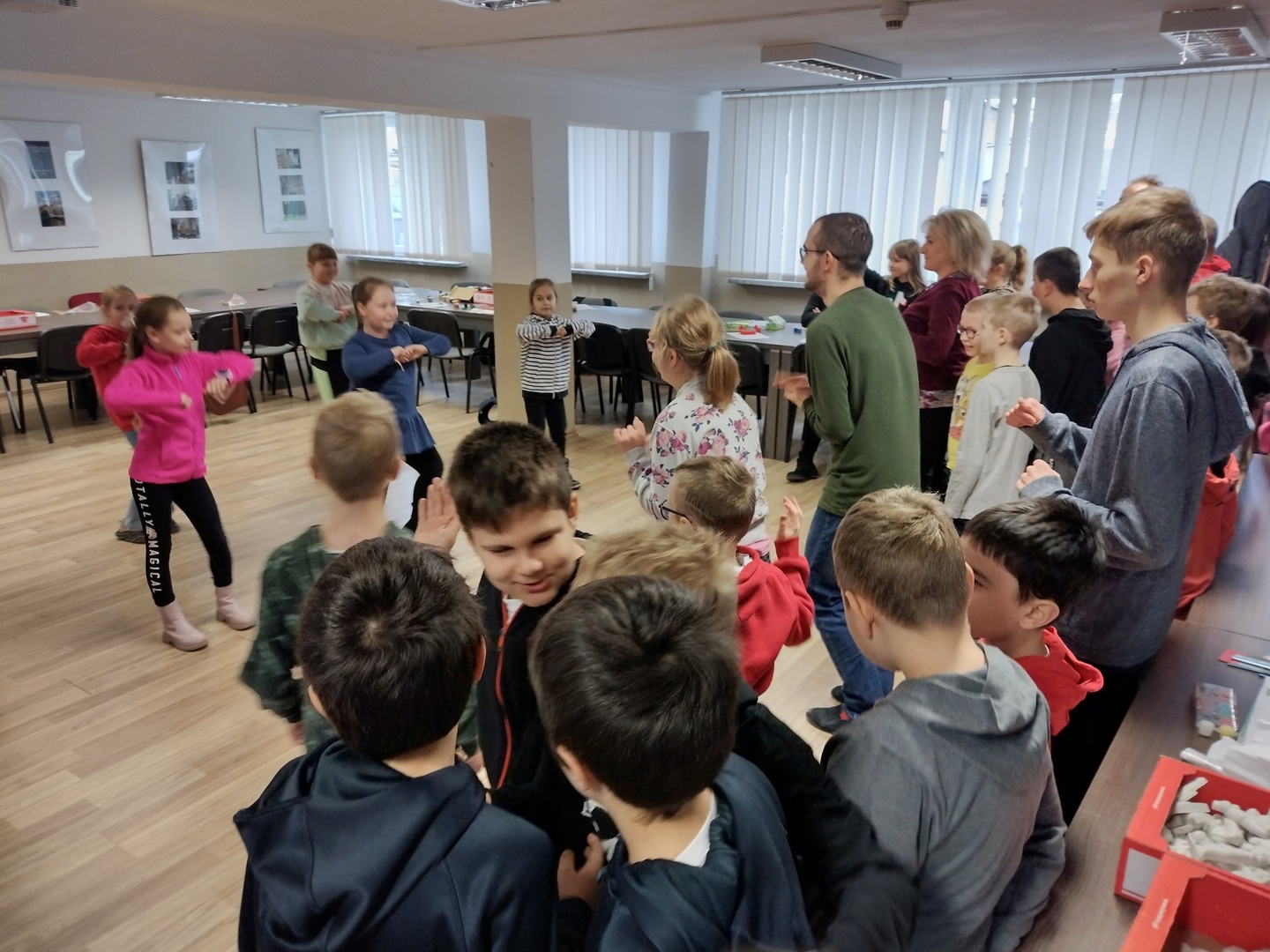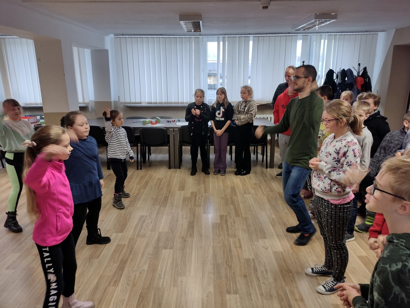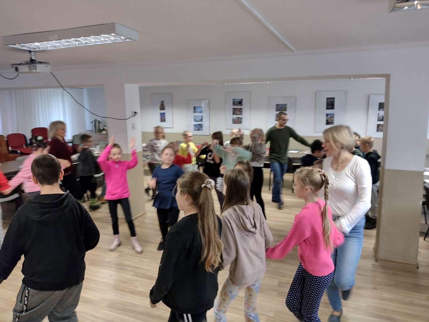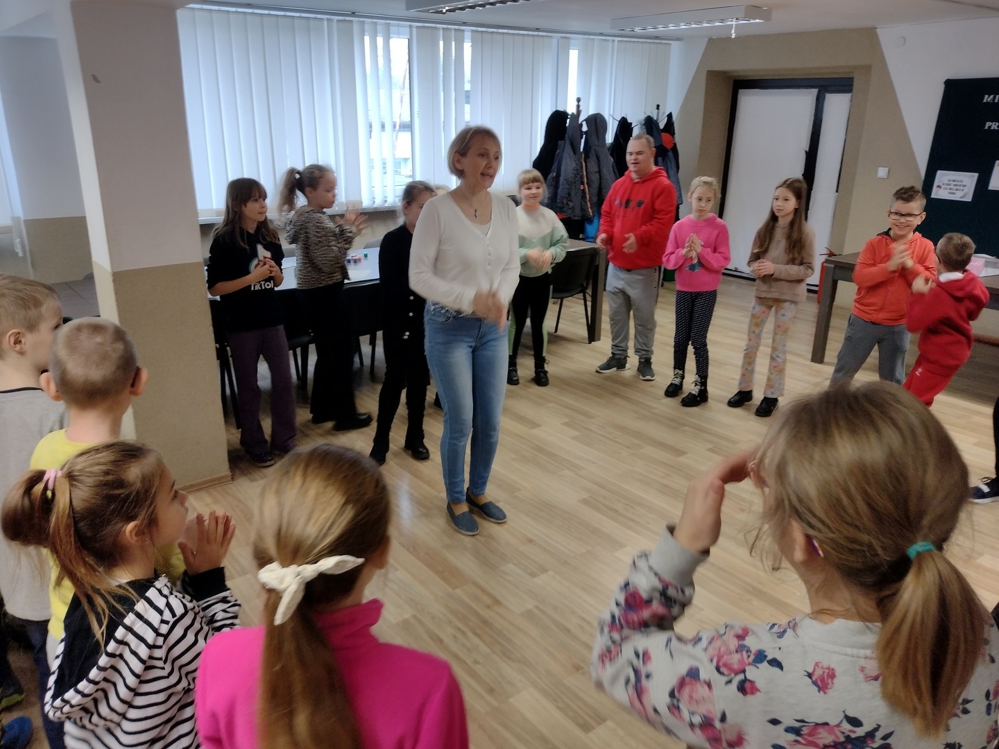 Co może powstać z połączenia gipsu i tańca, wspaniałe zajęcia integracyjne? Dzięki wiedzy i doświadczeniu jakie zdobyli nauczyciele podczas wyjazdu do Portugalii w dniu 22.11.2022 r. na terenie naszego ośrodka odbyły się zajęcia integracyjne z elementami biodanzy we współpracy z uczniami ze Szkoły Podstawowej Nr 1 im. Bolesława Prusa w Hrubieszowie. Tematem przewodnim zajęć był kolor, dźwięk i taniec. W trakcie zajęć uczestnicy mieli możliwość pomalowania figurek gipsowych o tematyce zbliżających się świąt. Figurki, które sprawiały najwięcej radości uczestnikom przedstawiały pingwiny, bałwanki, prezenty świąteczne oraz aniołki, które cieszyły się największym zainteresowaniem uczniów biorących udział w tej części zajęć. W dalszej części zajęć wszyscy uczestnicy mieli możliwość zapoznania się z układem tanecznym przygotowanym przez nauczyciela naszej placówki. Uśmiech na twarzach uczestników jest najlepszym dowodem, że zajęcia odniosły zaplanowany cel i są planowane kolejne wspólne warsztaty integracyjne. Zajęcia były realizowane w ramach projektu „W drogę po rozwój – mobilność kadry PZPSW w Hrubieszowie” nr projektu 2021-1-PL01-KA122-SCH-000015229, który jest realizowany ze środków Unii Europejskiej w ramach Programu Erasmus+ „W krainie koloru, dźwięku i tańca”.