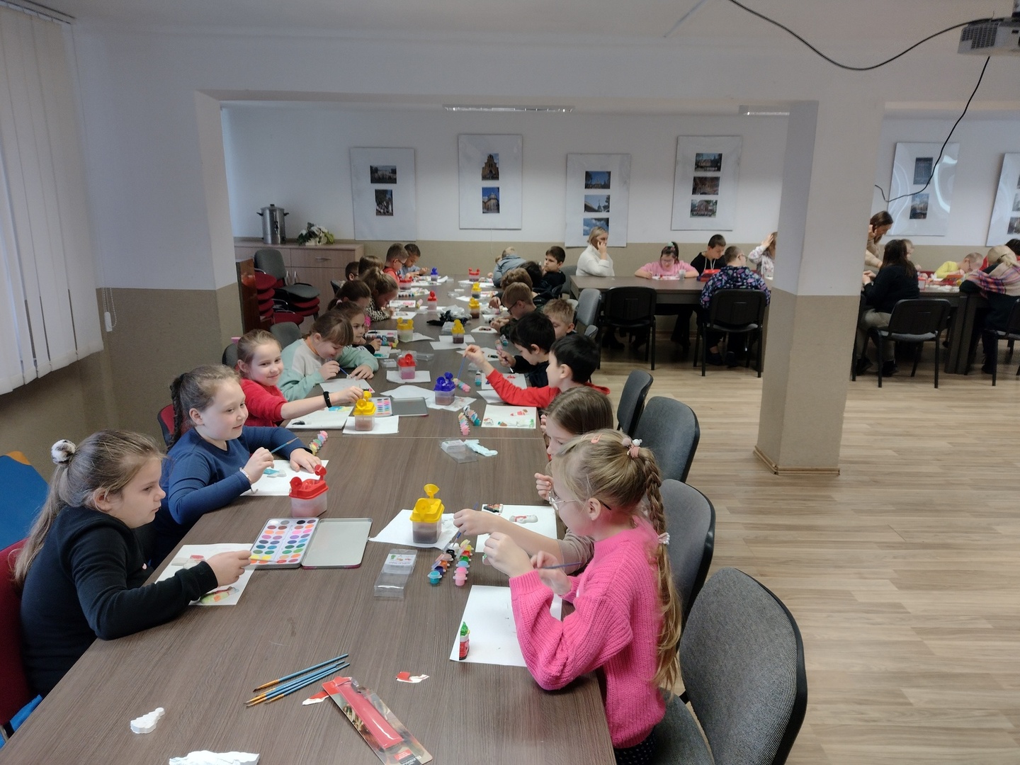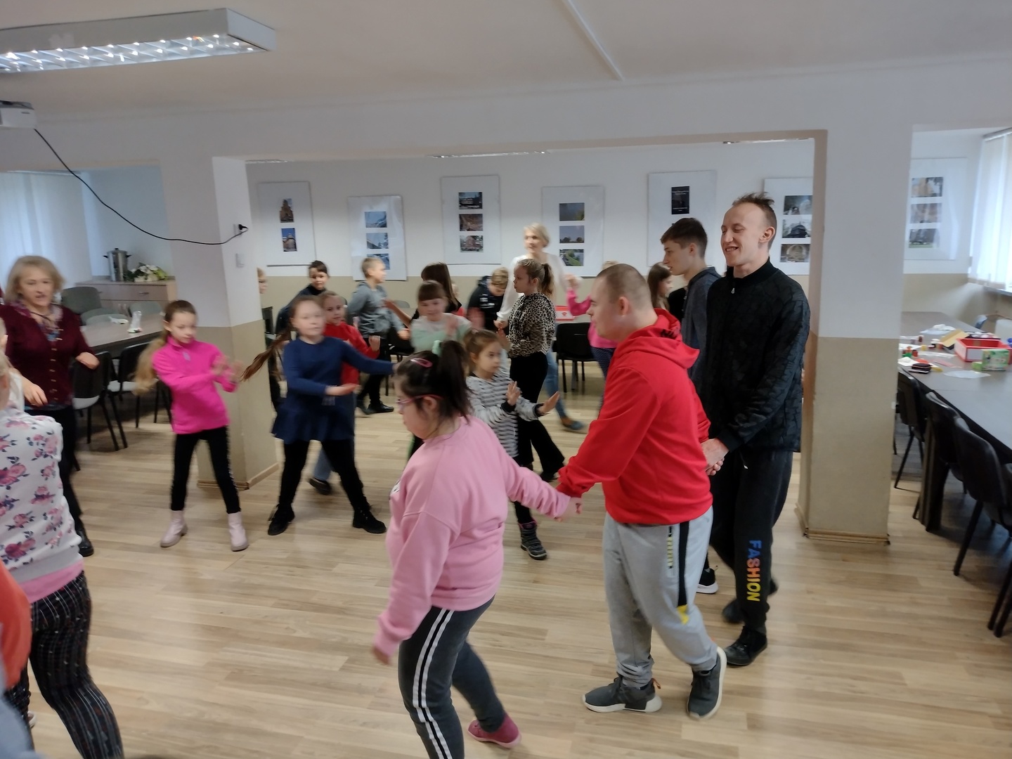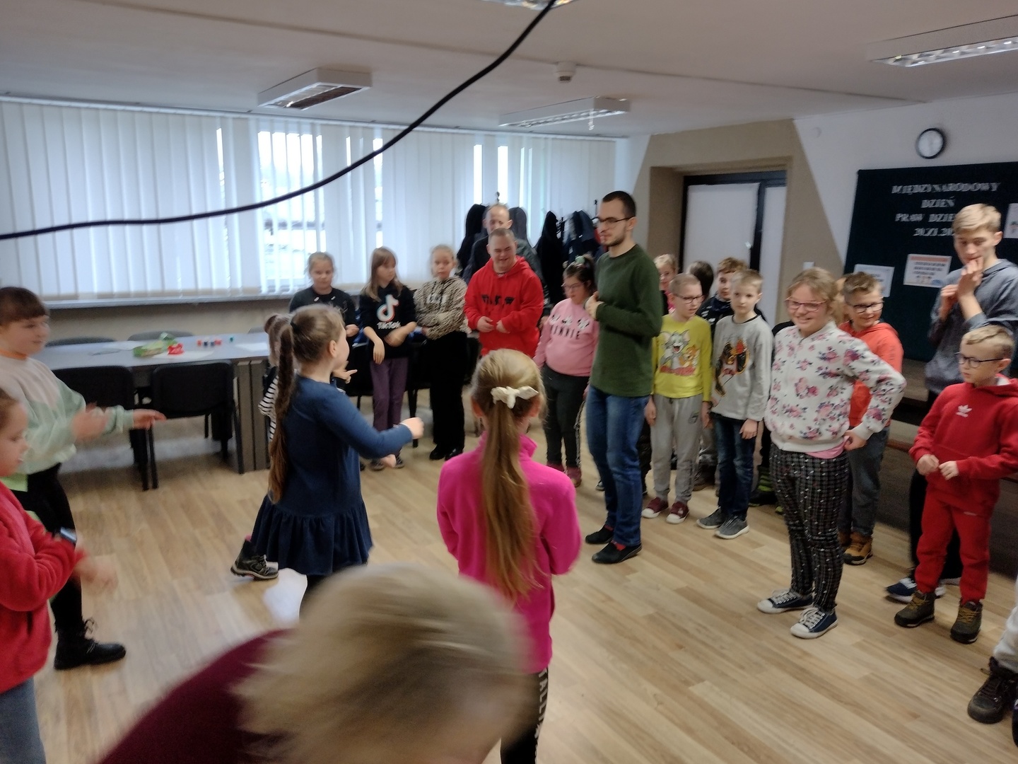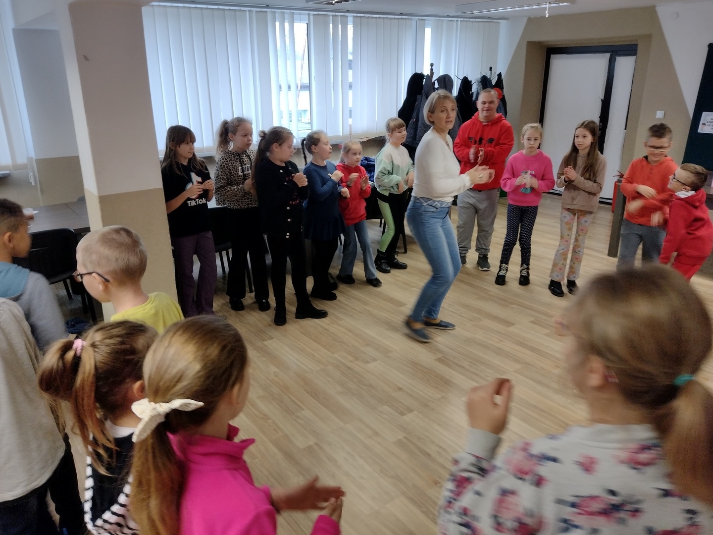Co może powstać z połączenia gipsu i tańca, wspaniałe zajęcia integracyjne? Dzięki wiedzy i doświadczeniu jakie zdobyli nauczyciele podczas wyjazdu do Portugalii w dniu 22.11.2022 r. na terenie naszego ośrodka odbyły się zajęcia integracyjne z elementami biodanzy we współpracy z uczniami ze Szkoły Podstawowej Nr 1 im. Bolesława Prusa w Hrubieszowie. Tematem przewodnim zajęć był kolor, dźwięk i taniec. W trakcie zajęć uczestnicy mieli możliwość pomalowania figurek gipsowych o tematyce zbliżających się świąt. Figurki, które sprawiały najwięcej radości uczestnikom przedstawiały pingwiny, bałwanki, prezenty świąteczne oraz aniołki, które cieszyły się największym zainteresowaniem uczniów biorących udział w tej części zajęć. W dalszej części zajęć wszyscy uczestnicy mieli możliwość zapoznania się z układem tanecznym przygotowanym przez nauczyciela naszej placówki. Uśmiech na twarzach uczestników jest najlepszym dowodem, że zajęcia odniosły zaplanowany cel i są planowane kolejne wspólne warsztaty integracyjne. Zajęcia były realizowane w ramach projektu „W drogę po rozwój – mobilność kadry PZPSW w Hrubieszowie” nr projektu 2021-1-PL01-KA122-SCH-000015229, który jest realizowany ze środków Unii Europejskiej w ramach Programu Erasmus+ „W krainie koloru, dźwięku i tańca”.