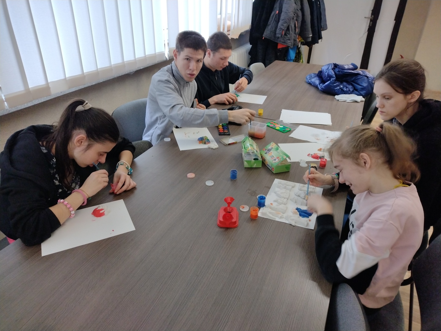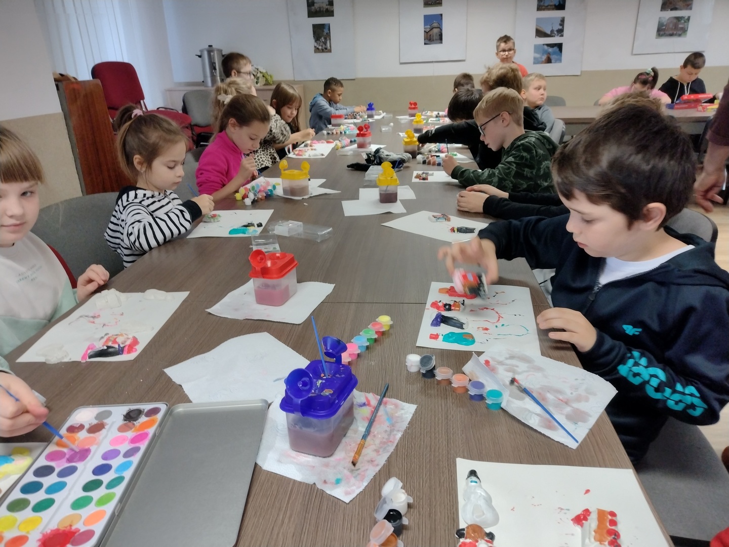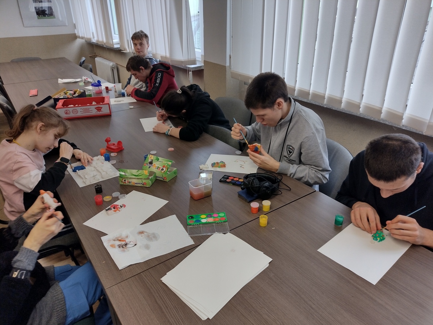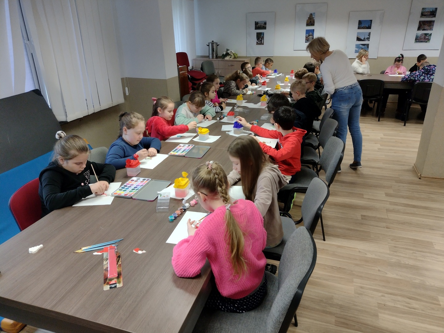 Co może powstać z połączenia gipsu i tańca, wspaniałe zajęcia integracyjne? Dzięki wiedzy i doświadczeniu jakie zdobyli nauczyciele podczas wyjazdu do Portugalii w dniu 22.11.2022 r. na terenie naszego ośrodka odbyły się zajęcia integracyjne z elementami biodanzy we współpracy z uczniami ze Szkoły Podstawowej Nr 1 im. Bolesława Prusa w Hrubieszowie. Tematem przewodnim zajęć był kolor, dźwięk i taniec. W trakcie zajęć uczestnicy mieli możliwość pomalowania figurek gipsowych o tematyce zbliżających się świąt. Figurki, które sprawiały najwięcej radości uczestnikom przedstawiały pingwiny, bałwanki, prezenty świąteczne oraz aniołki, które cieszyły się największym zainteresowaniem uczniów biorących udział w tej części zajęć. W dalszej części zajęć wszyscy uczestnicy mieli możliwość zapoznania się z układem tanecznym przygotowanym przez nauczyciela naszej placówki. Uśmiech na twarzach uczestników jest najlepszym dowodem, że zajęcia odniosły zaplanowany cel i są planowane kolejne wspólne warsztaty integracyjne. Zajęcia były realizowane w ramach projektu „W drogę po rozwój – mobilność kadry PZPSW w Hrubieszowie” nr projektu 2021-1-PL01-KA122-SCH-000015229, który jest realizowany ze środków Unii Europejskiej w ramach Programu Erasmus+ „W krainie koloru, dźwięku i tańca”.