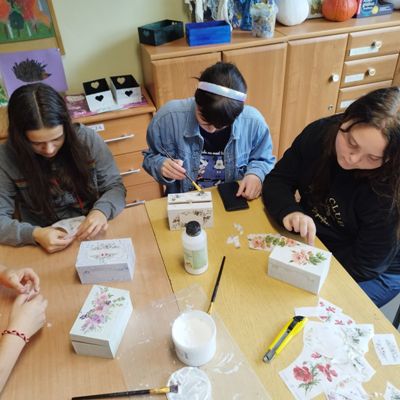 Od 13 września do 19 października 2022 r. odbywały się zajęcia „Kreatywna arteterapia” w ramach projektu organizowanego przez Stowarzyszenie „Mamy Siebie” dofinansowanego przez Województwo Lubelskie ze środków Państwowego Funduszu Rehabilitacji Osób Niepełnosprawnych z Regionalnego Ośrodka Polityki Społecznej w Lublinie. Zajęcia skierowane były do osób, które przez sztukę, chciały dotrzeć do wewnętrznych uczuć i emocji. Zajęcia grupowe kreatywna arteterapia wzmocniły wiarę we własne możliwości uczestników i pobudziły ekspresję twórczą. Kształtowały także wrażliwość i zdolność wyrażania uczuć oraz umiejętność nawiązywania kontaktów społecznych. Ogromną wartością arteterapii jest jej wpływ na proces osobotwórczy człowieka. Działania skoncentrowane były na twórczości rozumianej jako proces, jako tworzenie samego siebie, ze szczególnym zwróceniem uwagi na rozwój wrażliwości emocjonalnej, percepcyjnej i poznawczej, co wpłynęło na rozwój zdolności twórczych. Uczestnicy mieli okazję poznania technik plastycznych takich jak: decoupage, pouring, filcowania na sucho oraz neurografika.