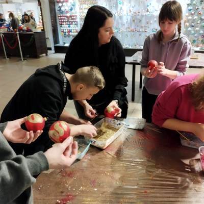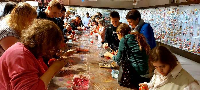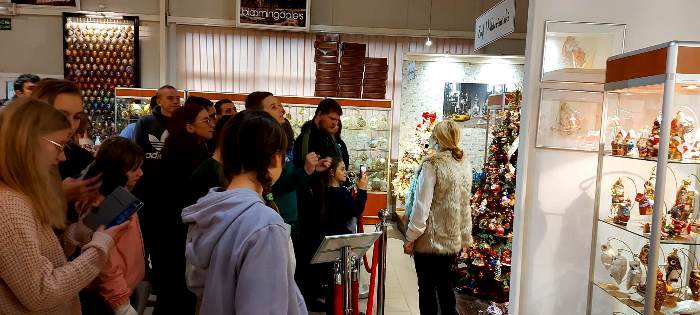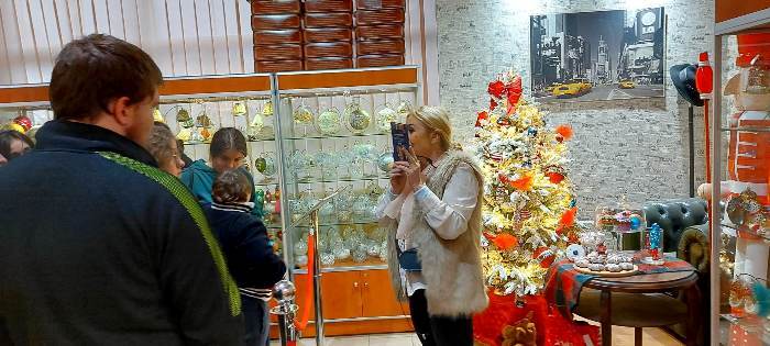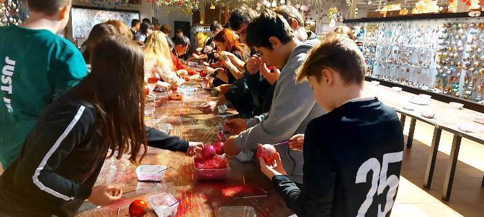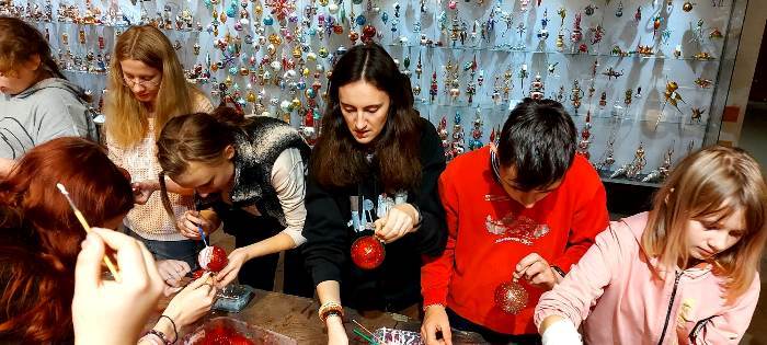 Następnie z pięknego Sandomierza udaliśmy się na wycieczkę do pierwszego w świecie Muzeum Bombki Choinkowej w Nowej Dębie. Pod opieką przewodnika oglądaliśmy przyozdobione choinki z różnych części świata i różnych epok, podziwialiśmy setki unikatowych i niepowtarzalnych ozdób. Obejrzeliśmy cały proces wyrobu ozdób choinkowych oraz pracownię ręcznego zdobienia bombek. Wielkim przeżyciem była możliwość uczestnictwa w warsztatach samodzielnego ozdabiania bombek. Na pamiątkę pobytu w fabryce każdy uczestnik wycieczki otrzymał bombkę własnoręcznie wykonaną podczas warsztatów. Ozdobią one świąteczne choinki . Na koniec naszego pobytu udaliśmy się do firmowego sklepu, gdzie każdy zaopatrzył się w przepiękne ozdoby, które zawisną na naszych choinkach. Pięknym ukoronowaniem wycieczki były również bombki z imieniem zamawiane przez uczestników wycieczki.