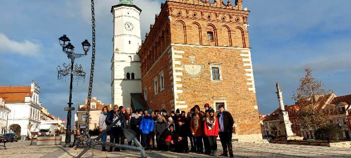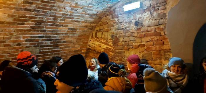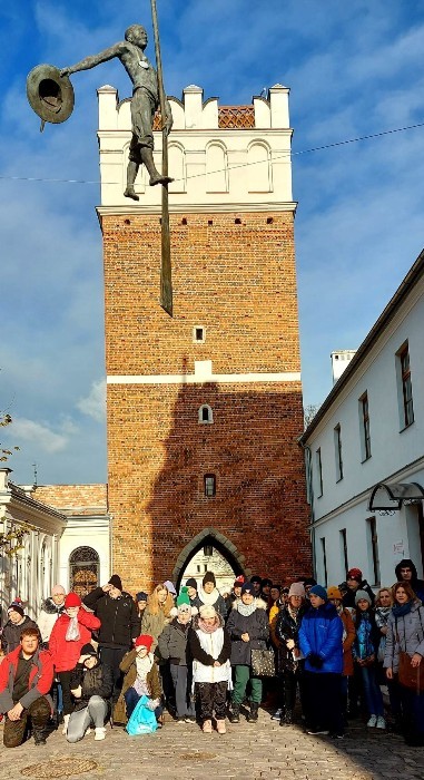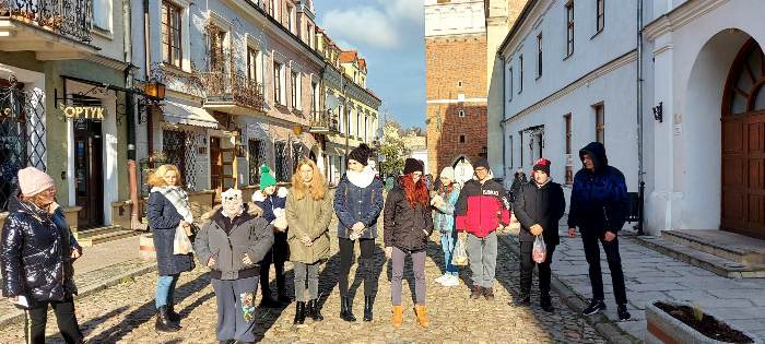 W dniu 28 listopada uczniowie naszej placówki wyruszyli wcześnie rano na wycieczkę do Sandomierza i Nowej Dęby. Podróż minęła nam wesoło i szybko. Po dotarciu na miejsce rozpoczęliśmy zwiedzanie zabytków miasta z przewodnikiem i poznaliśmy jego historię. Dowiedzieliśmy się, że ta urocza i malownicza miejscowość położona jest na siedmiu wzgórzach. Stąd też wzięła się jej druga nazwa “Mały Rzym”. Przez wieki była wielokrotnie niszczona, ale dzięki staraniom książąt, królów i innych znamienitych osób, zawsze ją odbudowywano. Mieszkało tutaj wielu wybitnych Polaków min. Jan Długosz, Wincenty Kadłubek, Henryk Sandomierski, Kazimierz Sprawiedliwy, Leszek Biały, Bolesław Wstydliwy i Leszek Czarny. Niezmiernie miło spacerowało nam się po starych i zabytkowych uliczkach podziwiając budowle sakralne i barwne kamieniczki. Podczas zwiedzania miasta uczniowie podziwiali Starówkę, zwiedzili kościół św. Jakuba, Bramę Opatowską, czyli - gotycką bramę wjazdową z drugiej połowy XIV w. zbudowaną z fundacji Kazimierza Wielkiego, jako część murów obronnych miasta. Duże zainteresowanie u uczniów wzbudziła Podziemna Trasa Turystyczna czyli sandomierskimi lochami, ciągnącymi się pół kilometra pod Starym Miastem, gdzie widzieliśmy groty, które w dawnych czasach były wykorzystywane jako piwnice dla handlarzy. Pokonaliśmy ram ponad czterysta schodków!