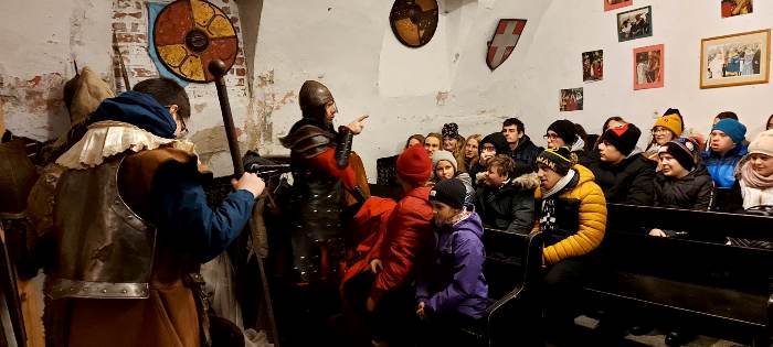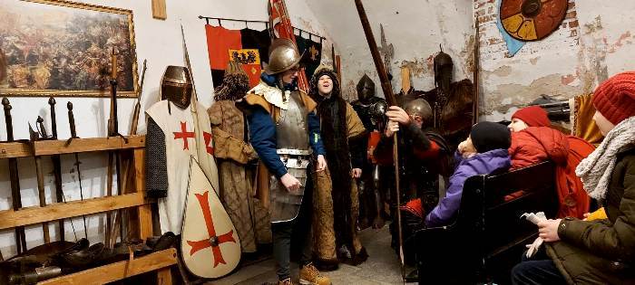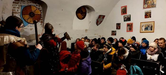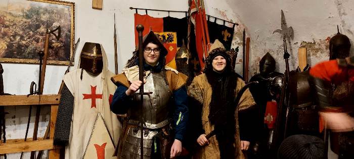 W zbrojowni rycerskiej oglądaliśmy stroje rycerzy i słuchaliśmy opowieści o tym jak Szwedzi zaatakowali Sandomierz. Jako główna atrakcją było zwiedzanie Muzeum - Sali - Świata Ojca Mateusza z figurami woskowymi głównych aktorów oraz kopiami wnętrz z serialu „Ojciec Mateusz” (kościół, kuchnia Natalii, komisariat policji, gabinet biskupa).