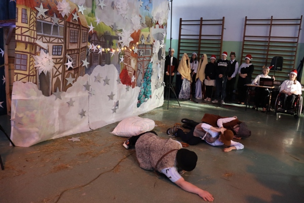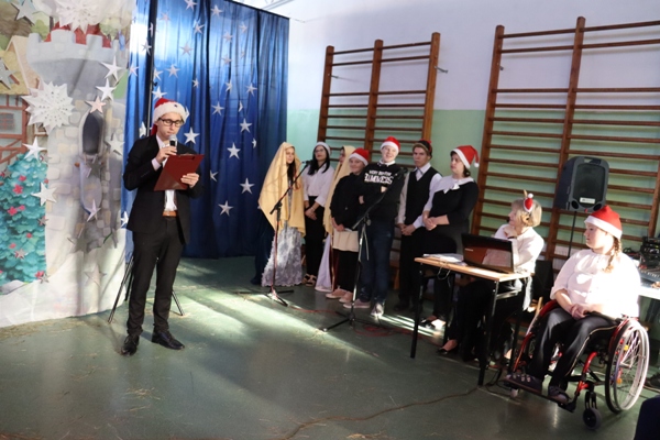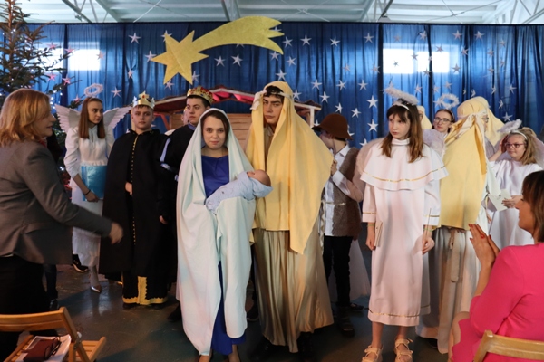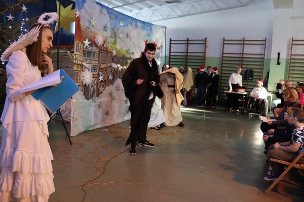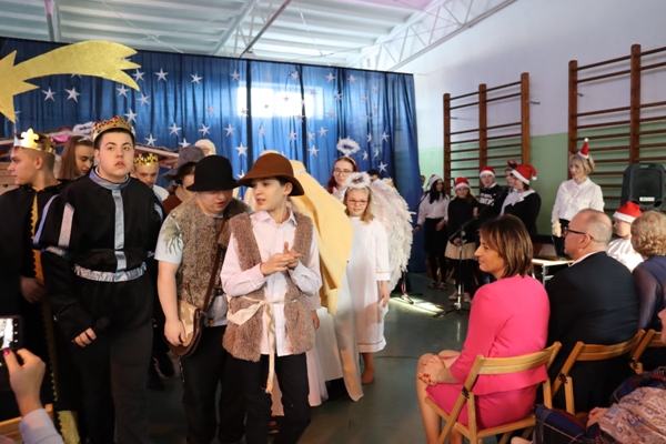 Każdego roku wspominamy wielką tajemnicę Boga - Człowieka. Na nowo przeżywamy Boże Narodzenie. Przygotowane przez naszych uczniów Jasełka pt.: "On jest Królem" wprowadziły nas w ten wyjątkowy nastrój zbliżających się świąt. Wspólnie przypomnieliśmy sobie historię narodzin Bożej Dzieciny oraz zaśpiewaliśmy kolędy. Miłą uroczystość spędziliśmy w towarzystwie gości: pani Anety Karpiuk, Starosty Hrubieszowskiego, pana Gerarda Pisiewicza, Sekretarza Powiatu Hrubieszowskiego, Czcigodnych Księży, emerytowanych Nauczycieli i Wychowawców naszego ośrodka oraz naszych kochanych Rodziców. Spotkanie zakończyło się przełamaniem opłatkiem oraz serdecznymi życzeniami. W tym dniu również w klasach odbyły się wigilie przygotowane przez rodziców, uczniów i wychowawców. To był piękny, wspólnie spędzony czas. W przystrojonych salach, przy dźwiękach nastrojowych kolęd.