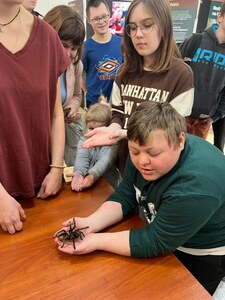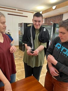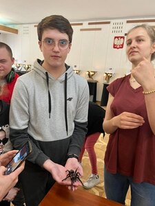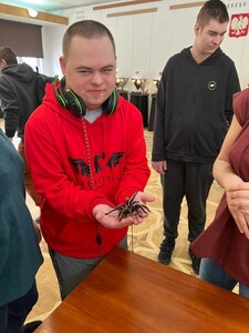 W środę 22 marca 2023 r. uczniowie szkoły przysposabiającej do pracy wyruszyli na spotkanie z egzotycznymi zwierzętami: pająkami i skorpionami. Przekonali się, że pająk wcale nie jest taki straszny! Poczuli się jak podróżnicy i poznali rzadkie okazy zwierząt ze wszystkich zamieszkałych kontynentów między innymi czarną wdowę, ptasznika goliata, świecące skorpiony i wiele innych. Każdy odważny uczestnik, choć z nietęgą miną, trzymał w dłoni ciekawy okaz pająka. Spotkanie z tak wyjątkowymi mieszkańcami naszej planety było zaskakujące i pełne pozytywnych emocji.