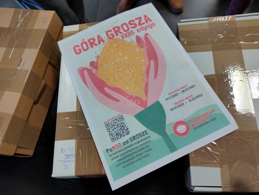 Nasza placówka wraz z Niepublicznym Przedszkolem "Mamy Siebie" po raz kolejny przyłączyła się do ogólnopolskiej akcji "Góra Grosza XXIII edycja ", której organizatorem jest "Towarzystwo Nasz Dom". Celem akcji jest pomoc dzieciom, które wychowują się poza swoją rodziną - w domach dziecka czy rodzinach zastępczych. Akcja rozpoczęła się 01.11.2022 roku i trwała do 28.02.2023 roku. W tym czasie w sekretariacie, w pokoju nauczycielskim oraz w pokoju wychowawców stały oznaczone logiem akcji puszki, do których można było wrzucać grosiki. Po tym czasie nastąpiło segregowanie, przeliczanie oraz wysyłka monet. Razem zebraliśmy 309 zł 55 gr. Serdecznie dziękujemy dzieciom, młodzieży, rodzicom oraz pracownikom za aktywny udział w akcji. Osoby odpowiedzialne za akcję: Weronika Dąbrowska, Małgorzata Gronowska, Magdalena Antoniewicz - przedszkole