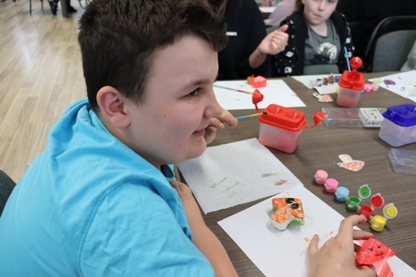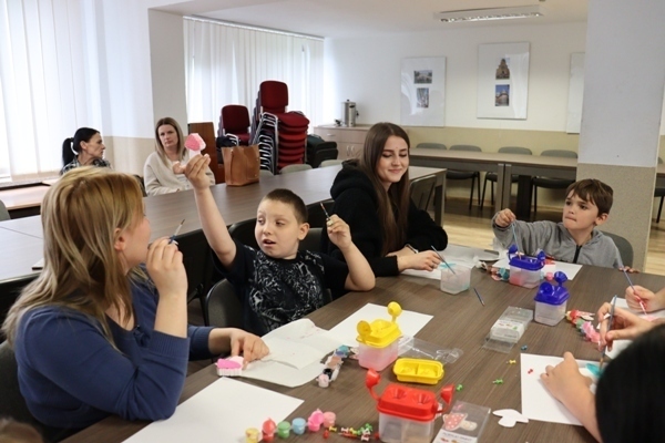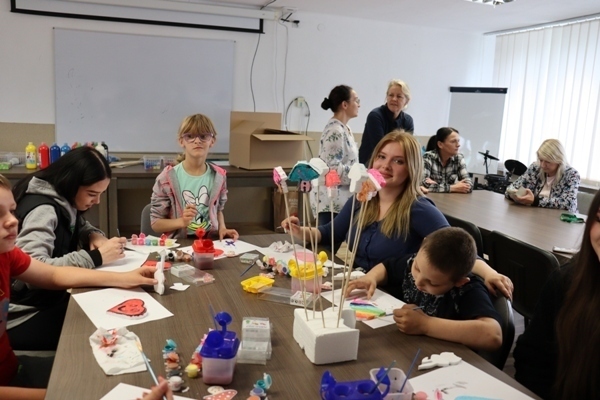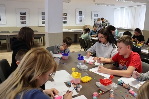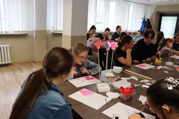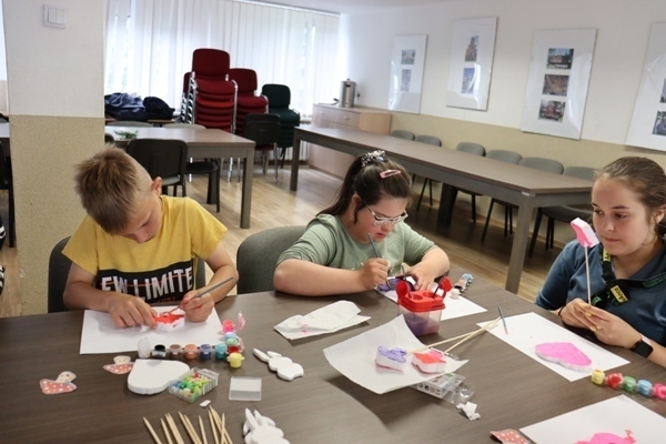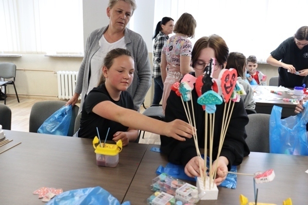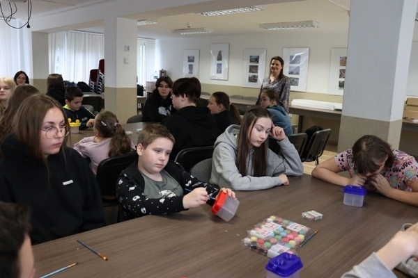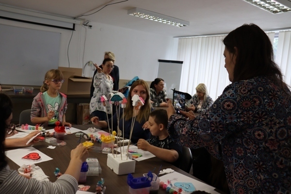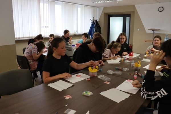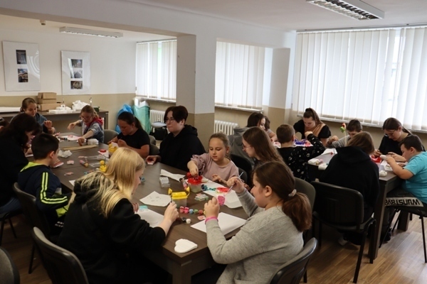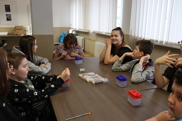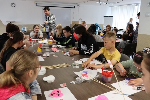 We wtorek najmłodsze dzieci naszego ośrodka uczestniczyły w warsztatach "Dobra zabawa to nie tylko tablet". Wspólnie z uczennicami klasy III E I Liceum Ogólnokształcącego im. ks. Stanisława Staszica w Hrubieszowie, wykonały śliczne, kolorowe muchomorki i serduszka. Podczas artystycznej zabawy uczestnicy samodzielnie wycinali kształty w styropianie, dobierali kolory i ożywiali barwami biel styropianu. Zajęciom towarzyszyły koleżeńskie rozmowy sprzyjające zintegrowaniu uczestników warsztatów. Wizyty młodzieży ze „Staszica” to stały element współpracy naszych szkół, to budowanie więzi i wyjątkowa okazja do integracji w pełnym znaczeniu tego ważnego dla nas słowa.