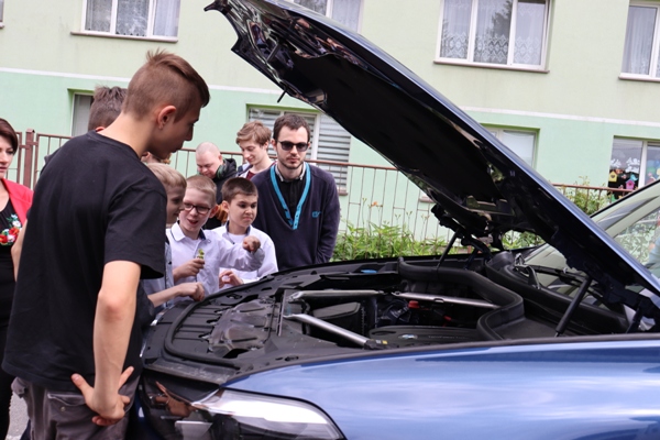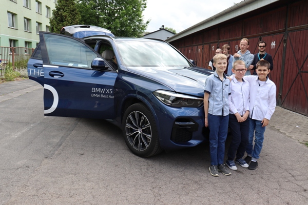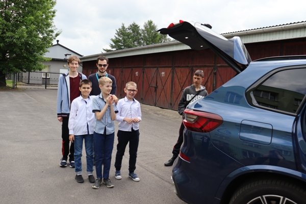 Uczniowie naszej szkoły przygotowali prace plastyczne na konkurs organizowany przez BMW Best Auto Lublin i Platinum Motor Lublin pod hasłem „Wizje przyszłości – Konkurs dla małych genialnych umysłów”. W dniu 14 czerwca 2023 r. przedstawiciel firmy BMW Best Auto Lublin, osobiście przyjechał po odbiór prac konkursowych. Uczniowie mogli obejrzeć piękne, nowe auto, skorzystać z krótkiej przejażdżki bez kierowania, posiedzieć za kierownica i sprawdzić czy działa klakson. Chłopcy zainteresowani motoryzacją zajrzeli pod maskę i uzyskali odpowiedź na pytania dotyczące szczegółów technicznych. Wizyta pana Krzysztofa sprawiła dzieciom wielką frajdę.