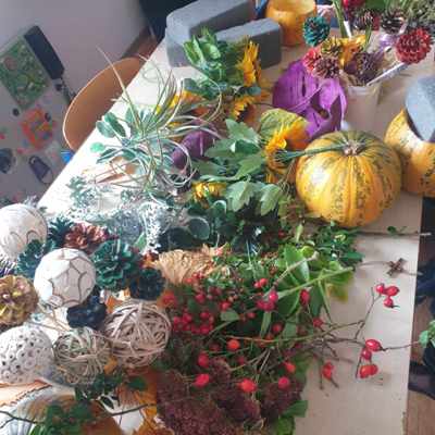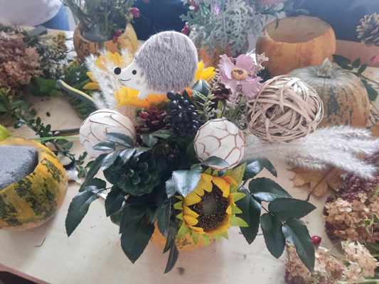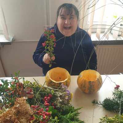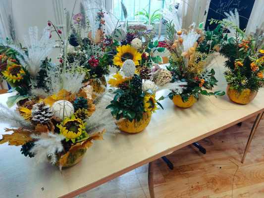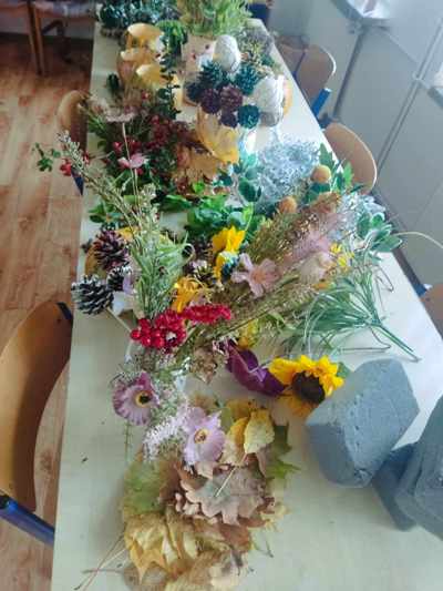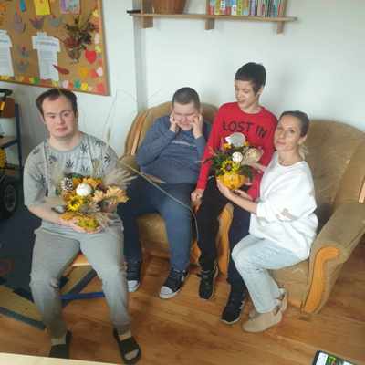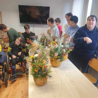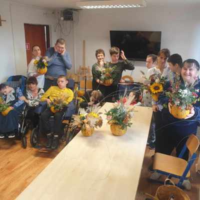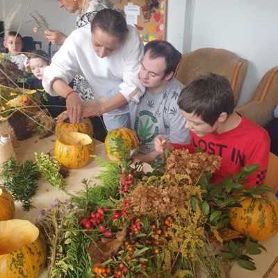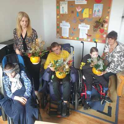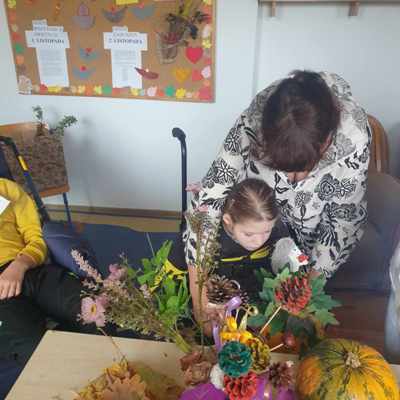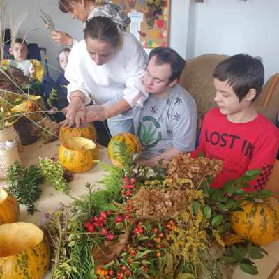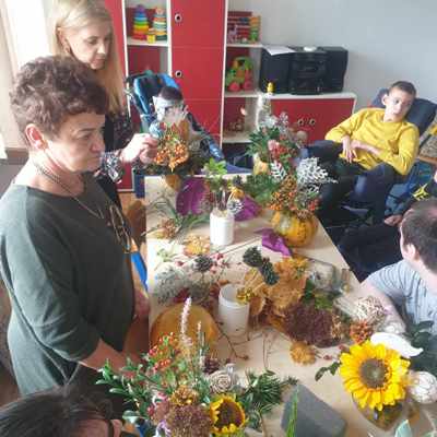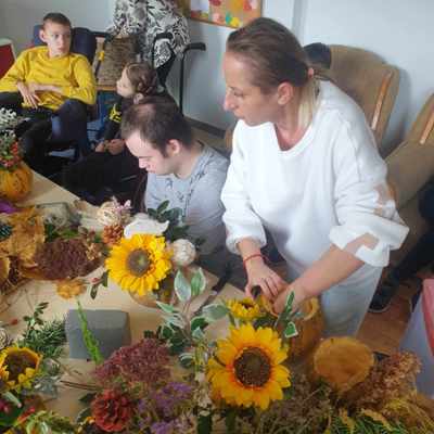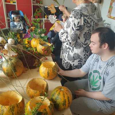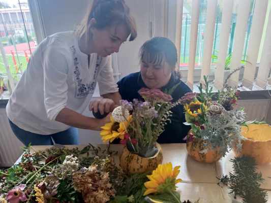 Jesienne bukiety wprowadzają do wnętrza jesienny nastrój i umilają długie wieczory, spędzane w domowym zaciszu. To doskonała forma dekoracji. Ta pora roku to ciepłe barwy, które kojarzą się z ciepłem domowego ogniska i harmonią, dlatego warto skusić się na bukiet kwiatów we wnętrzu, który umili nam długie jesienno-zimowe wieczory. Z czego zrobić jesienny bukiet? Na to pytanie odpowiedzi poszukali uczniowie zespołów rewalidacyjno – wychowawczych wykonując podczas warsztatów florystycznych kompozycje kwiatowe w dyniowych wazonach. Do przygotowania bukietów użyli barwnych liści, różnorodnych traw, szyszek i jesiennych ozdób. Te piękne kompozycje ozdobią wnętrza naszych florystów.