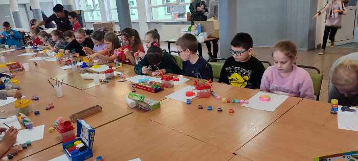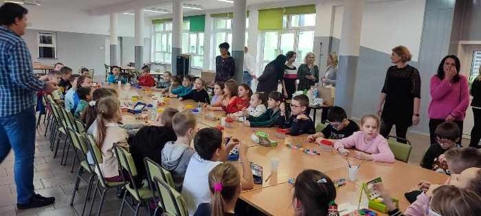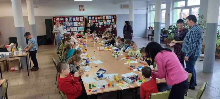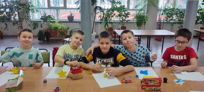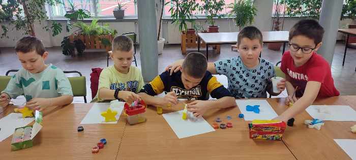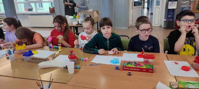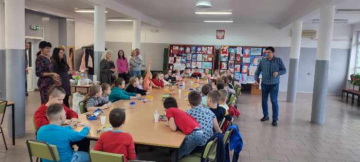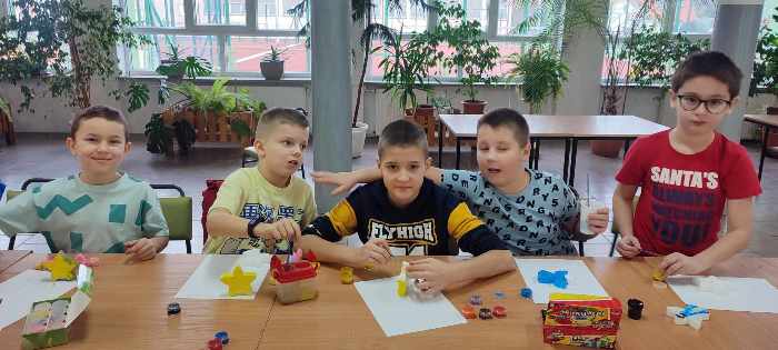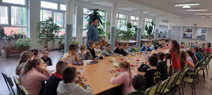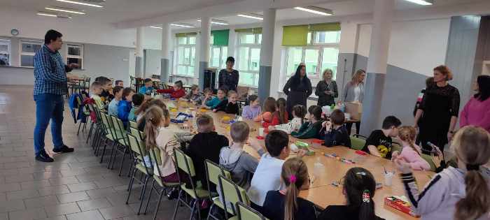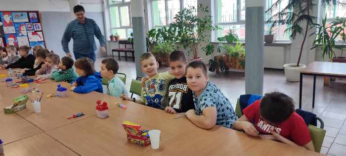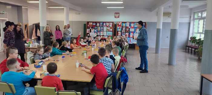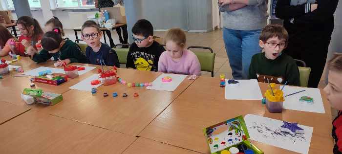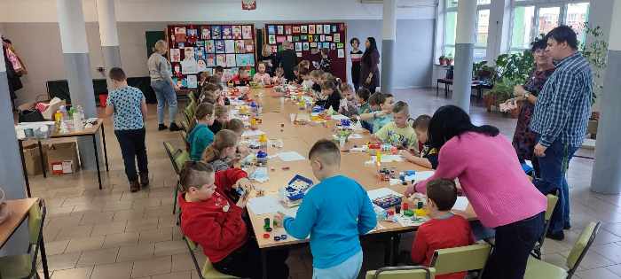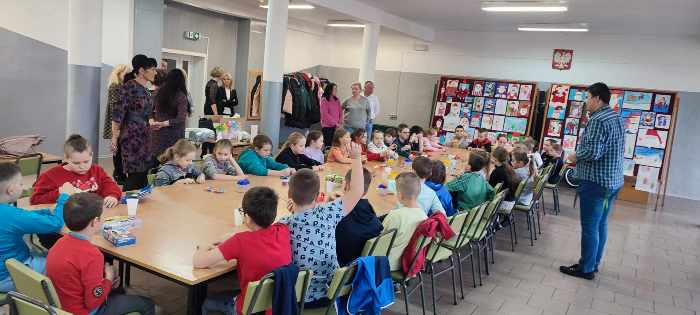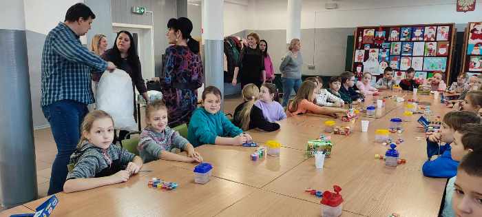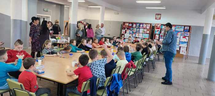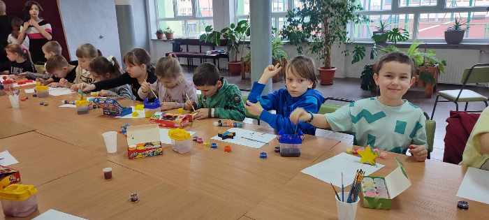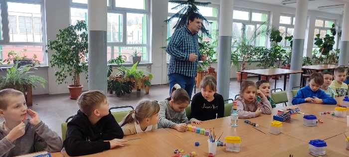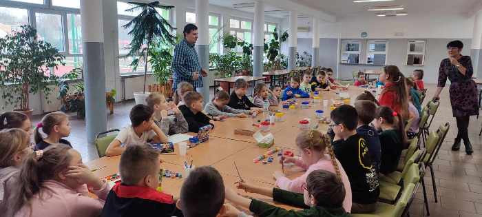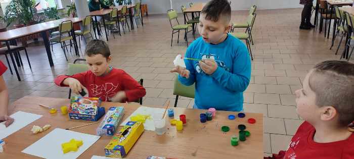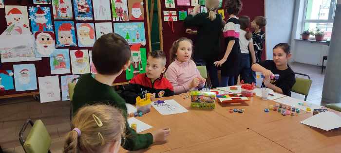 Grudniową tradycją naszej szkoły stały się Integracyjne Warsztaty Świąteczne do udziału, w których zapraszamy uczniów z zaprzyjaźnionych szkół. 21 grudnia 2023 r. uczniowie szkoły podstawowej spotkali się uczniami klasy 3A Szkoły Podstawowej Nr 1 w Hrubieszowie. Uczestnicy wysłuchali opowieści o symbolach najpiękniejszych świąt i zabrali sie do pracy czyli malowania i ozdabiania przygotowanych dekoracyjnych elementów, w tym: choinek, bombek oraz gwaiazdek. Dzięki zaangażowaniu dzieci powstały barwne prace plastyczne z efektem 3D. Dziękujemy naszym gościom za wspólną, twórczą zabawę i miło spędzony czas.
