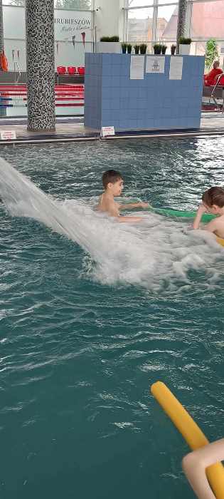 Bez względu na wiek i stopień sprawności ruchowej, zajęcia na basenie wpływają pozytywnie na rozwój psychofizyczny i sprawność każdego. Uuczniowie szkoły podstawowej bardzo chętnie korzystają z lekcji wychowania fizycznego na hrubieszowskiej Pływalni Fala. Zajęcia wyzwalają nie tylko naturalną potrzebę ruchu, ale pozwalają uczniom na kreowanie samodzielnej aktywności ruchowej. Kształtują wreszcie cechy motoryczne i osobowościowe uczestników. Pływanie ponadto w sposób harmonijny i symetryczny rozwija całe ciało, bardziej pobudza mięśnie niż inna forma aktywności fizycznej. Jest swoistą gimnastyką mięśni i stawów, zmniejsza napięcie mięśniowe, stymuluje prawidłowy rozwój gorsetu mięśniowego i aparatu kostno – stawowego. Zajęcia na basenie są dla wielu uczniów ważnym uzupełnieniem zajęć z wychowania fizycznego i gimnastyki korekcyjnej.