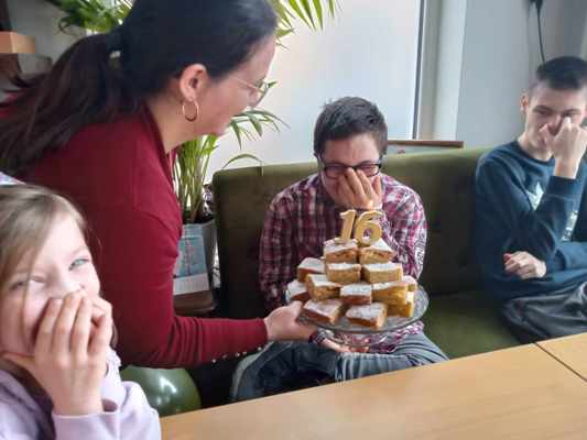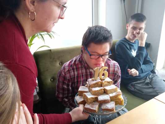 Taka data urodzin to podobno przywilej. W dniu dzisiejszym tj. 29 lutego uczniowie Szkoły Przysposabiającej do Pracy świętowali 16. urodziny kolegi. Jakub świętował w otoczeniu najbliższych: rodziców, rodzeństwa oraz przyjaciół. To nietypowe spotkanie odbyło się w wyjątkowo nastrojowej kawiarni przy deptaku miejskim. Dziękujemy za zaproszenie i życzymy Jakubowi kolejnych niezapomnianych spotkań urodzinowych.
