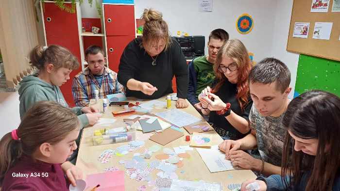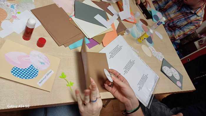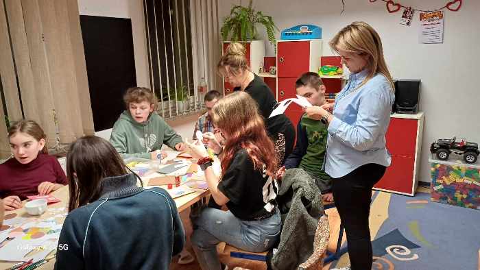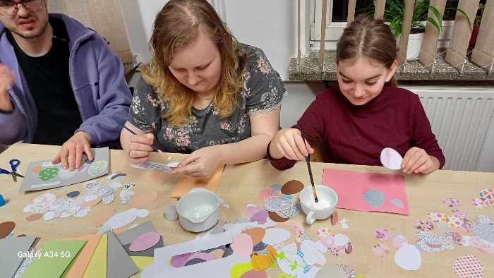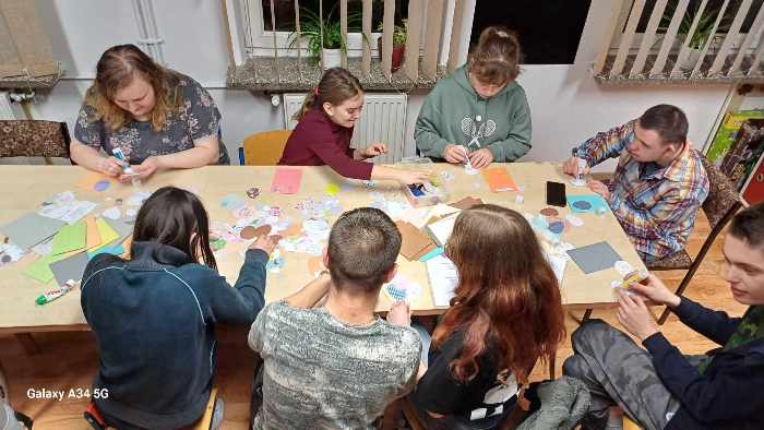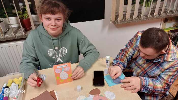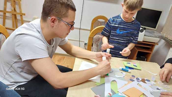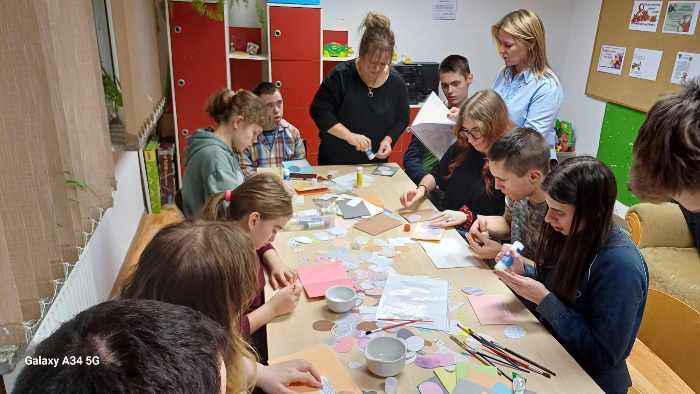 W środę 13 marca 2024 r. wychowankowie internatu wzięli udział w warsztatach plastycznych „Kartka wielkanocna”. Zajęciom praktycznym towarzyszyły rozmowy o tradycjach przekazywania sobie życzeń za pomocą kart świątecznych, wysyłanych pocztą. Wychowankowie wspólnie układali życzenia, które następnie wpisywali do przygotowanych przez siebie, pięknie ozdobionych wielkanocnych kart.