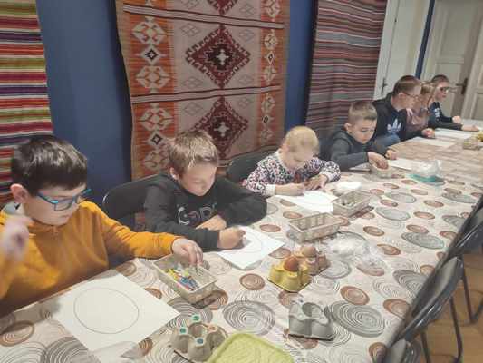 Uczniowie klasy I i V uczestniczyli w warsztatach muzealnych "Pisanki, kraszanki jajka malowane" poświęcinych przygotowaniom do świąt wielkanocnych. Na to miłe spotkanie zaprosiło dzieci Muzeum im. ks. Stanisława Staszica w Hrubieszowie. W czasie zajęć dzieci poznały różne techniki malowania jajek jak również dowiedziały się czym rózni się pisanka od kraszanki! Każdy uczestnik ozdabiał jajka przeobrażając je w piękne, barwne pisanki. Warsztaty są ciekawą lekcją historii oraz okazją do twórczej aktywności dzieci.
