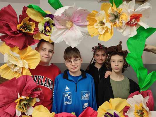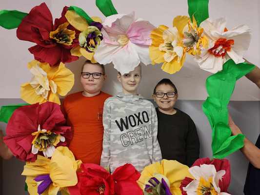 Powitanie wiosny odbyło sie w naszej szkole z odrobiną szleństwa bo na głowach uczniów i nauczycieli pojawiły się oryginalne fryzury w związku z ogłoszonym 21 MARCA "Dniem szalonej fryzury"! Uczniowie zamienili również codzienne plecaki na niecodzienne torebki, siatki, worki itp. Nasze wspaniałe humory uwieczniane były w przygotowanej przez samorząd uczniowski, wiosennej, kwiatowej Fotoramce. Kreatywnosc uczniów została nagrodzona słodyczami i maskotkami.