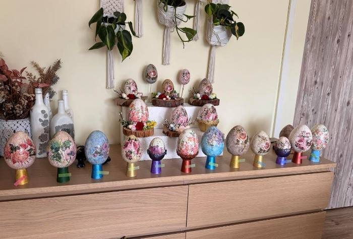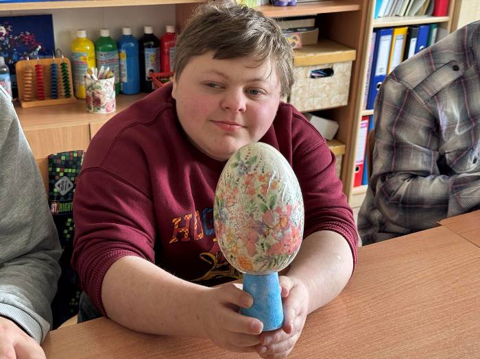Tradycyjnie sporo wcześniej staramy się zaplanować wystrój naszego stołu czy domów. Malowanie wielkanocnych pisanek tuż przed świętami to jedna z nieodłącznych i najstarszych tradycji związanych z obchodami Wielkiej Nocy. Z myślą o świątecznych ozdobach uczniowie klas Pdp na zajęciach przysposobienia do pracy pod czujnym okiem pani Magdaleny Mielniczuk wykonali pisanki wielkanocne techniką decoupage. To bardzo pracochłonna, wymagająca wiele cierpliwości praca. Rekompensatą za poświęcony czas i wysiłek były niezwykle efektowne pisanki. Zajęcia odbywały się w miłej atmosferze, sprawiły uczniom dużo radości i dumy z własnych dokonań. Efekt końcowy przerósł nasze oczekiwania, bo wszystkie pisanki wyszły przepięknie i będą prawdziwą ozdoba naszych stołów i mieszkań. Efekt pracy można podziwiać na zdjęciach poniżej.