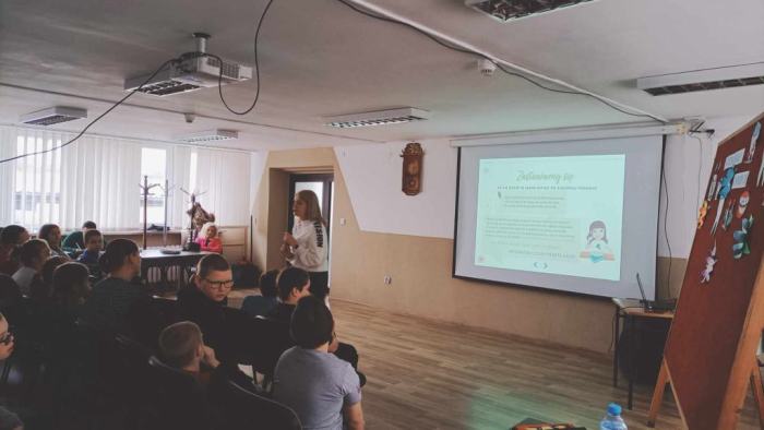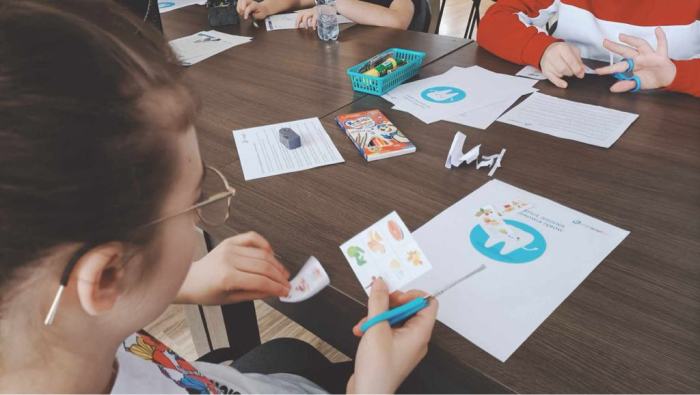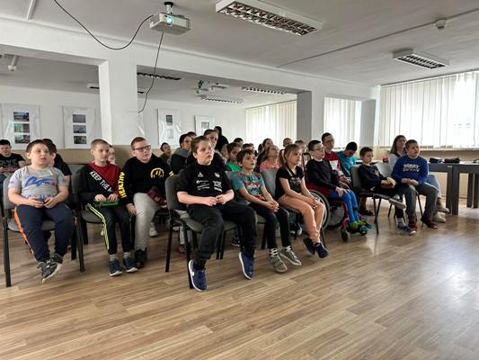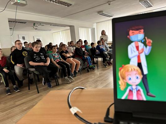 22 marca nasi uczniowie wzięli udział w warsztatach "Śnieżnobiały uśmiech". Z zainteresowaniem obejrzeli film edukacyjny o pracy stomatologa i wysłuchali prezentacji dotyczącej dbania o zęby. Dowiedzieli się m.in. jakie pokarmy są najlepsze dla zębów, a jakie szkodzą ich zdrowiu. Bardzo spodobała im się piosenka Jacka Cygana "Śnieżnobiały uśmiech", szybko nauczyli się refrenu i śpiewali razem z artystami. Na zakończenie bez problemów rozwiązali test związany z tematem warsztatów. Po takim spotkaniu już nikt nie powinien się bać wizyty u dentysty.