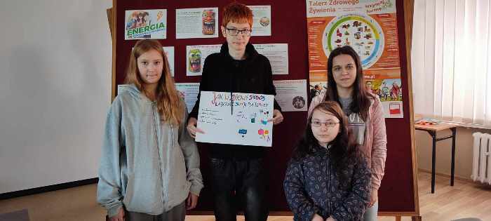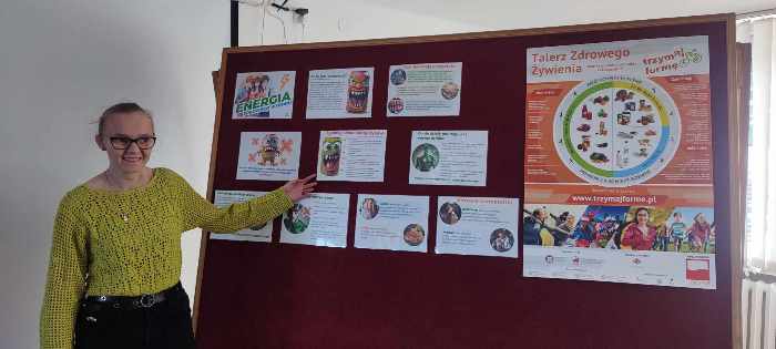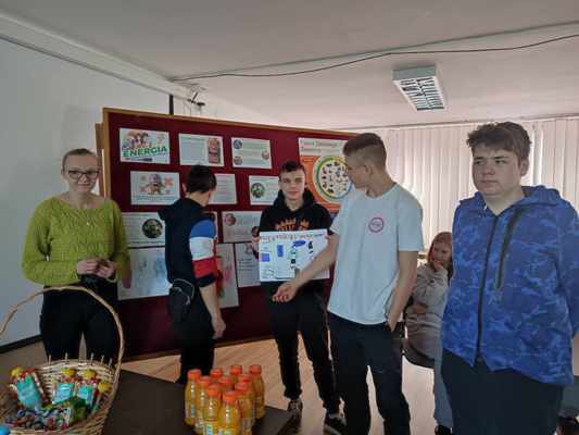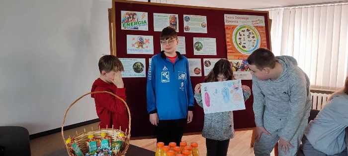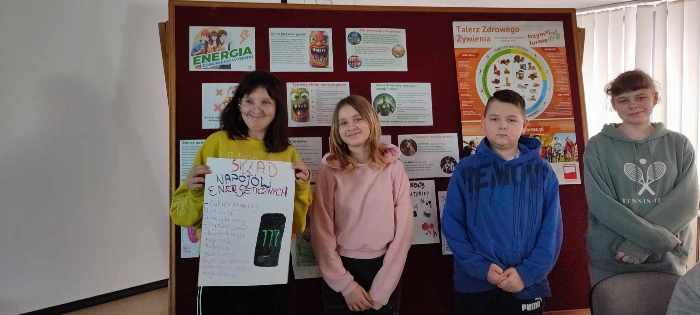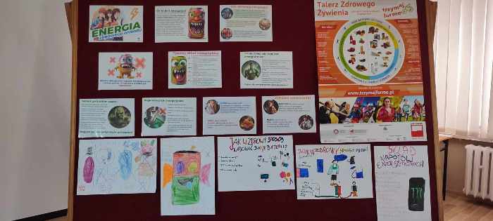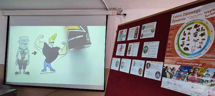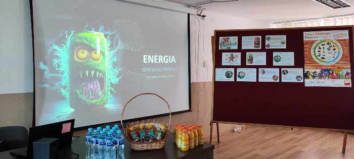 Dnia 27.03.2024 r. w naszej szkole odbyły się warsztaty profilaktyczne pt. "Energia zdrowego wyboru" realizowane w ramach Ogólnopolskiego Programu Edukacyjnego "Trzymaj formę" przy współpracy z Powiatową Stacją Sanitarno-Epidemiologiczną w Hrubieszowie. Odbiorcami warsztatów byli uczniowie klas IV-VIII i I-III BSIS. Celem spotkania było uświadomienie uczniom szkodliwości spożywania napojów energetycznych. W I części zajęć było wprowadzenie do tematu. Wyświetlona prezentacja przedstawiła co wchodzi w skład energetyka, pokazano skutki uboczne oraz przedstawiono pomysły na zdrowe zamienniki. Sprawdzeniem wiedzy był quiz o szkodliwości picia energetyków. Uczniowie chętnie odpowiadali na pytania. Podsumowaniem akcji była karta pracy oraz plakat, który uczniowie wykonywali w grupach. Na koniec zajęć wszyscy dostali zdrowe przekąski, wodę i soki.