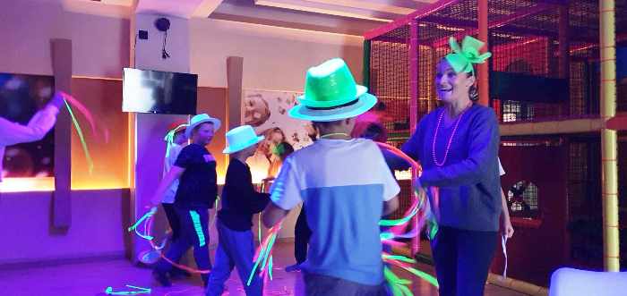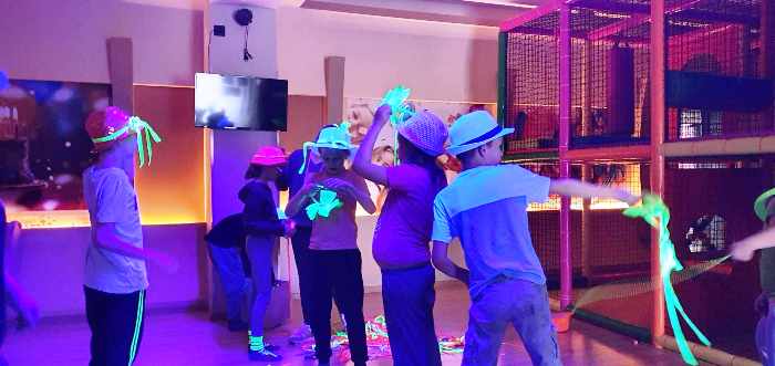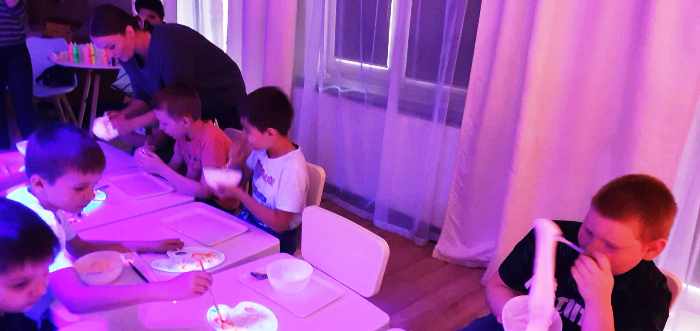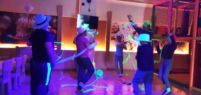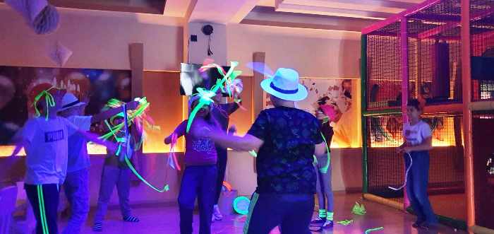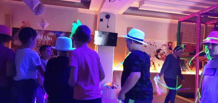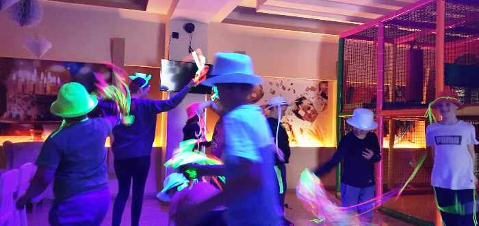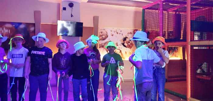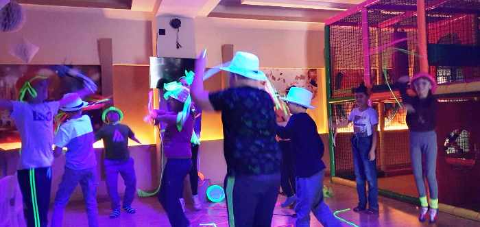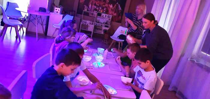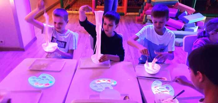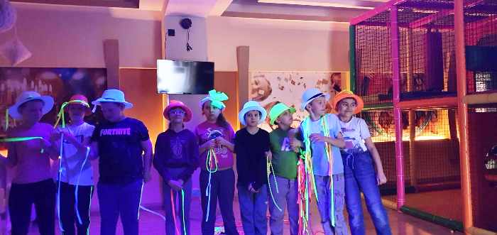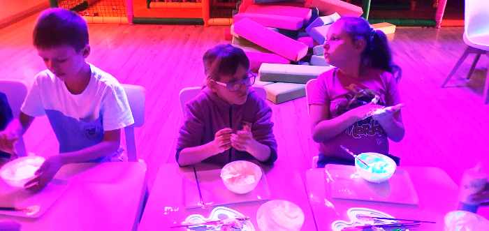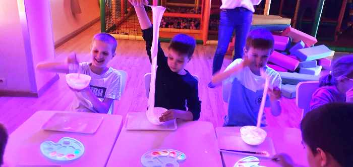 Pod okiem pani Joanny wykonywali świecące slimy. W przerwie skorzystali z sali zabaw. Również zabawy muzyczne przebiegały w atmosferze fluo. Spotkanie zakończył smaczny posiłek.