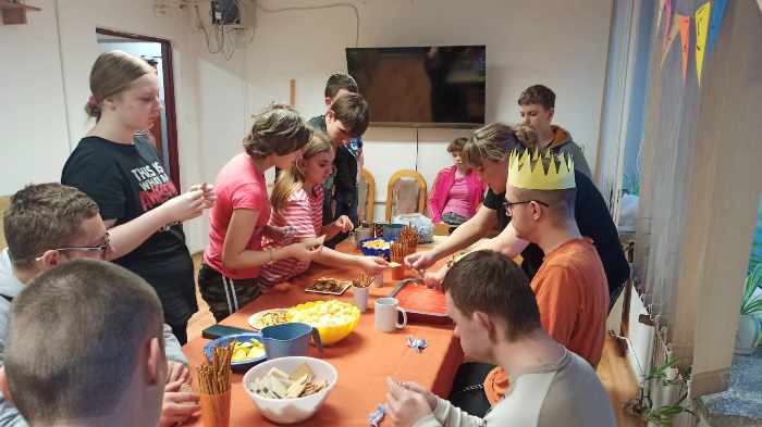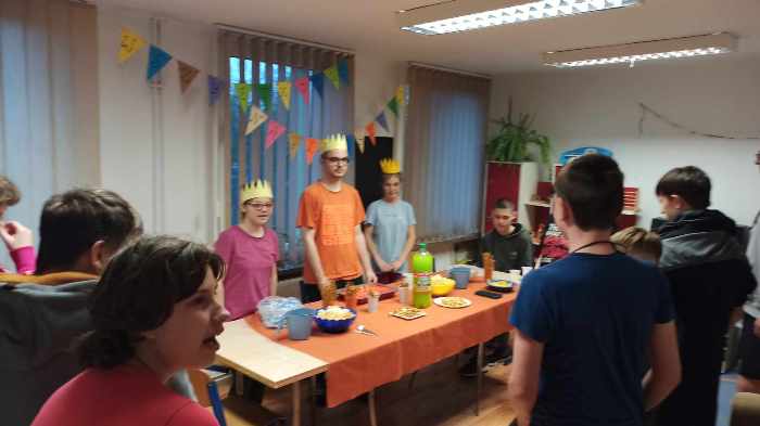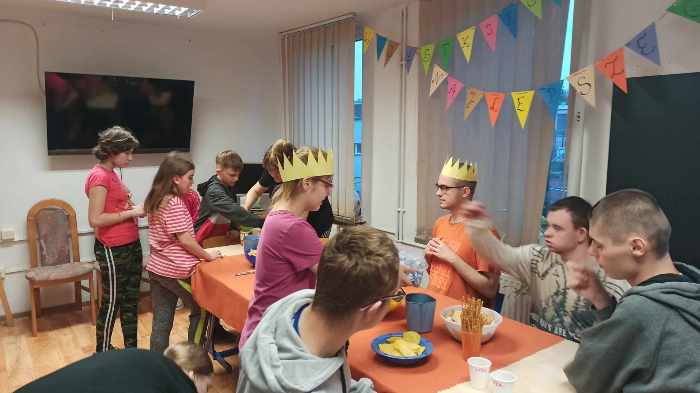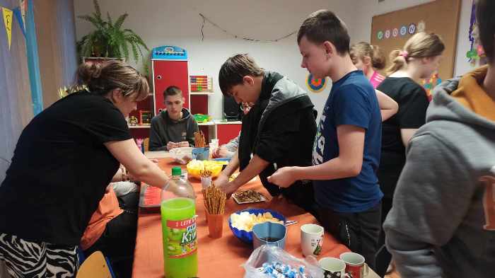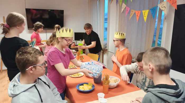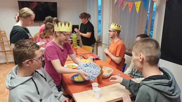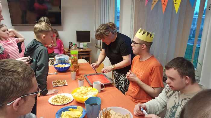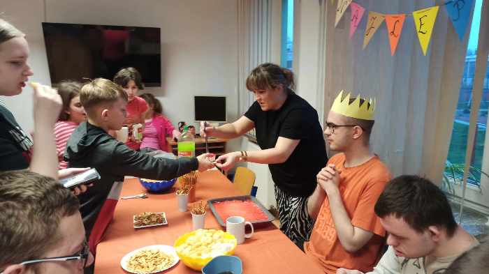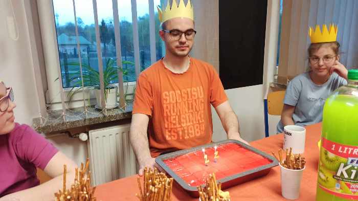 W dniu 10.04.2024 r. troje wychowanków mieszkających w internacie obchodziło urodziny. Z tej okazji, reszta wychowanków przygotowała niespodziankę w postaci przyjęcia, na którym wszyscy mieli okazję spędzić wspólnie czas oraz spróbować pysznego ciasta. Solenizanci usłyszeli piękne życzenia oraz piosenki urodzinowe na swoją cześć. Ostatnią częścią świętowania była dyskoteka i wspólna zabawa. Jubilaci byli bardzo szczęśliwi, że mogli świętować swój dzień z kolegami i koleżankami. Wszyscy wychowankowie bawili się wspaniale.