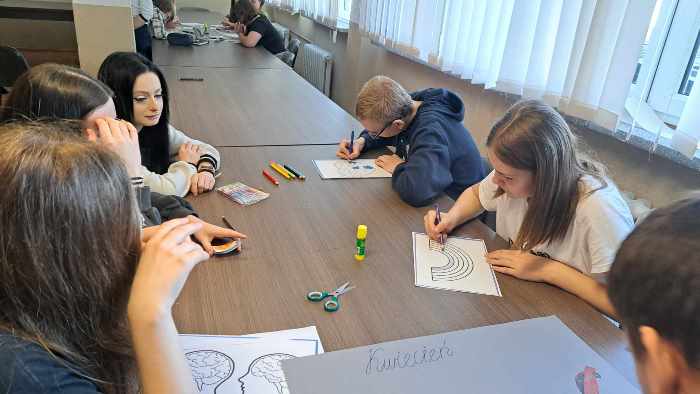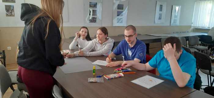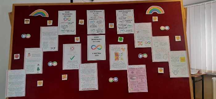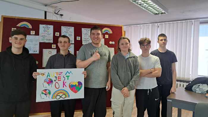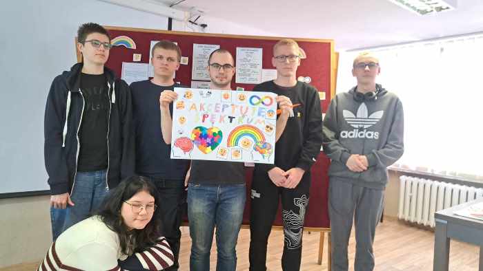 W kwietniu już od kilku lat dokładamy swoją cegiełkę w akcję szerzenia świadomości i akceptacji osób w spektrum autyzmu, wśród których jest wielu naszych uczniów. W ramach akcji w tym roku odbyły się warsztaty, w których uczestniczyli uczniowie z Zespołu Szkół nr 3, im. Tadeusza Kościuszki w Hrubieszowie. Nasi goście podczas trwających ponad dwie godzinny warsztatów dowiedzieli się, co oznacza pojęcie spektrum autyzmu i z czym wiąże się funkcjonowanie osób z autyzmem. Wspólnie obalaliśmy mity na temat spektrum, przybliżyliśmy pojęcie neuroróżnorodności. Korzystając z apeli i wiedzy samorzeczników – osób z autyzmem propagujących wiedzę na ten temat, uczyliśmy się jak powinna wyglądać autentyczna akceptacja osób neurotypowych wobec osób neuroróżnorodnych. Po zakończonej pogadance odbyła się część praktyczna z uczniami PZPSW. W czasie której, podzieleni na grupy uczniowie wspólnie przygotowywali plakaty na temat autyzmu. Dziękujemy bardzo naszym gościom za poświęcony czas, okazaną ciekawość i zaangażowanie we wspólne zadania z uczniami z naszej szkoły. Zapraszamy za rok.