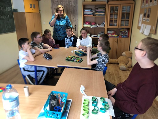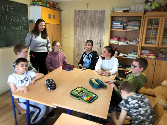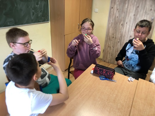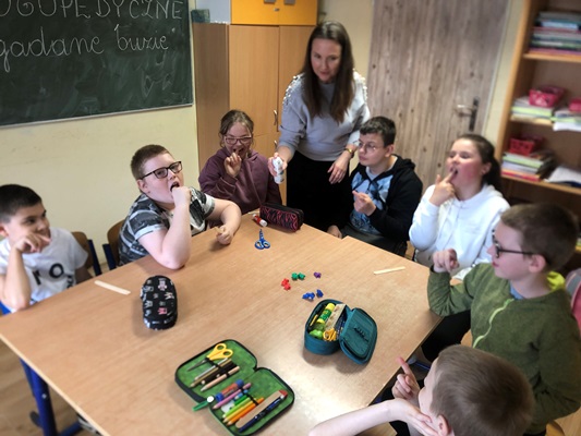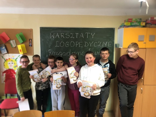 W dniu 24.04.2024 roku uczniowie klas III i IV szkoły podstawowej uczestniczyli w warsztatach logopedycznych "Rozgadane buzie".