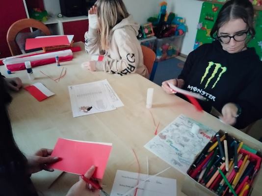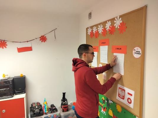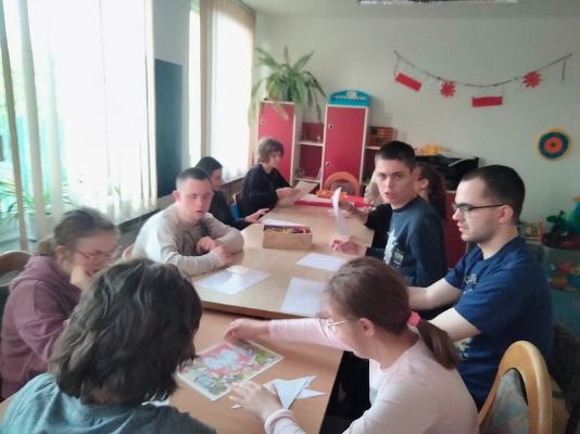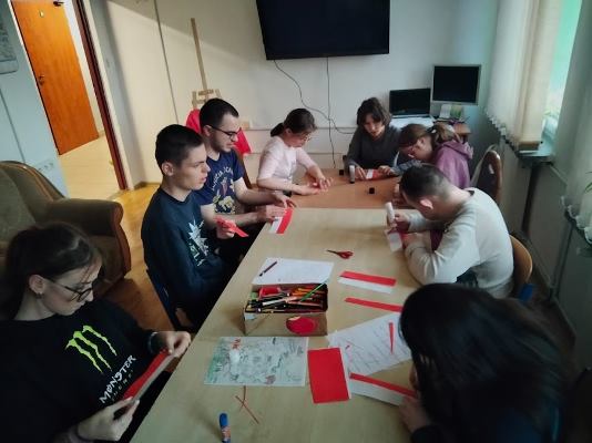 Pierwsze dni maja, to czas obfitujący w rocznice i święta narodowe związane z historią Polski, Europy oraz bogactwem symboli narodowych. Wychowankowie grup wychowawczych uczestniczyli w zajęciach patriotycznych związanych ze zbliżającymi się świętami. Celem spotkania było kształtowanie szacunku dla własnego państwa, kształtowanie postaw patriotycznych u wychowanków oraz rozwijanie poszanowania i zainteresowania symbolami narodowymi i rozwijanie poczucia tożsamości narodowej. Rozmawialiścmy o symbolice świąt, o symbolach narodowych, o znaczeniu konstytucji oraz o dwudziestej rocznicy przystąpienia Polski do Unii Europejskiej. Natomiast na zajęciach plastycznych wykonaliśmy różne zadania i prace w barwach biało - czerwonych, w tym flagi, które zdobić będą okna domów naszych wychowanków. Zajęcia cieszyły się zainteresowaniem o czym świadczyć może zaangażowanie, aktywność wychowanków i powstała efektowna gazetka okolicznościowa.