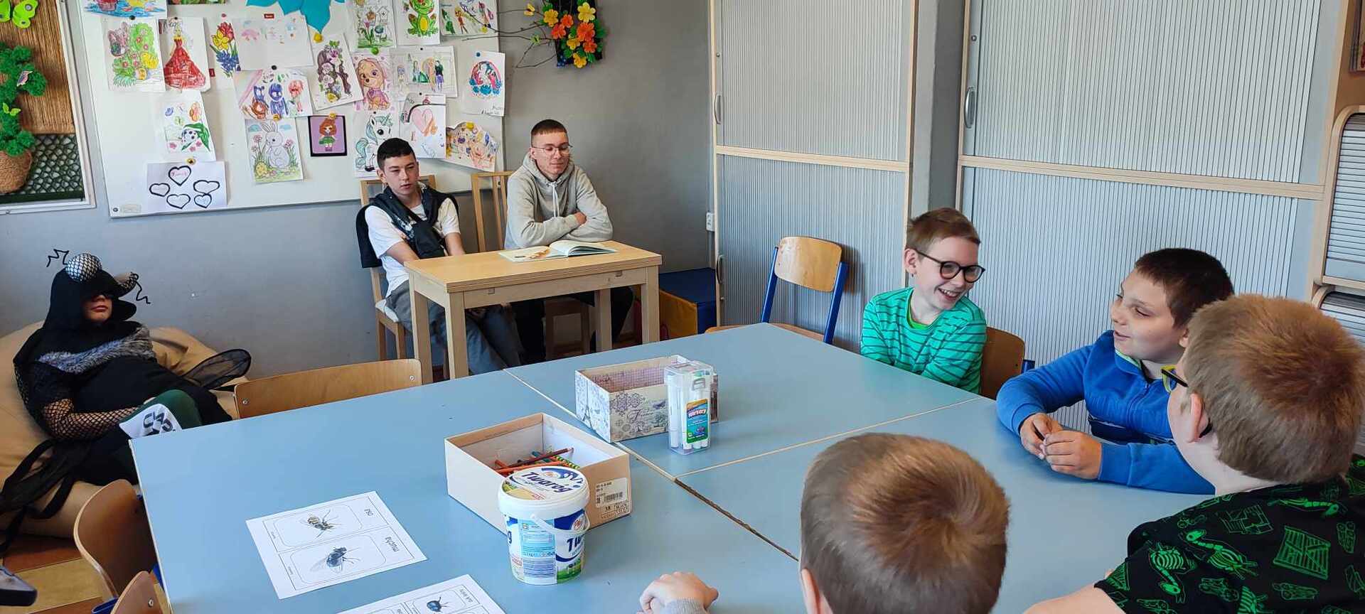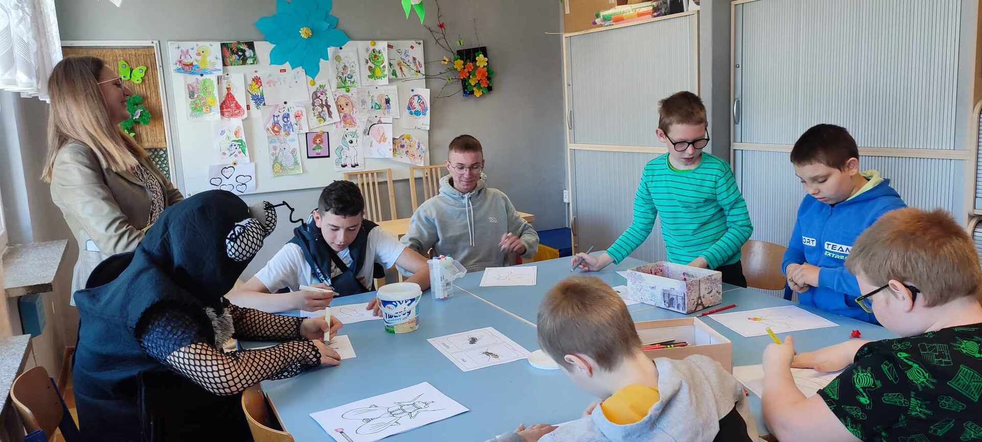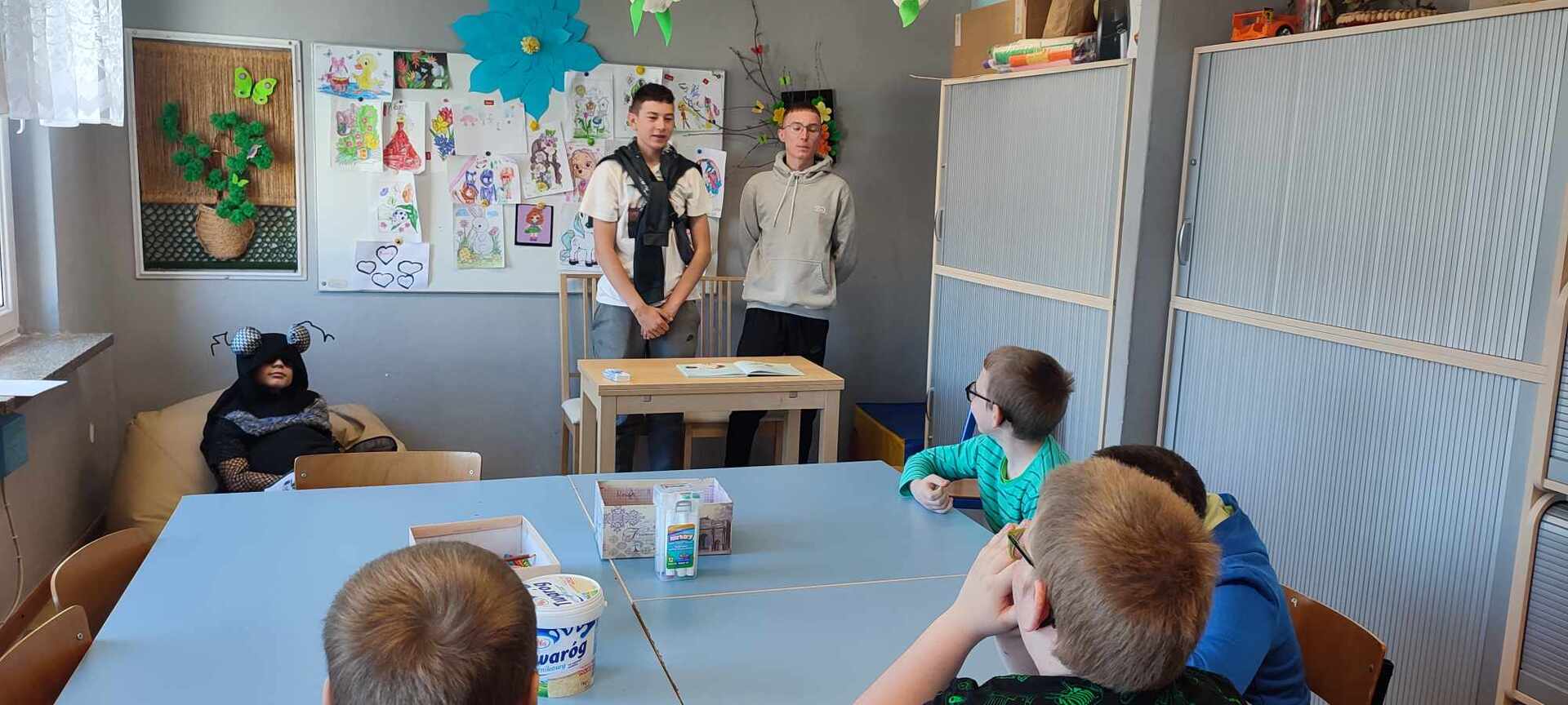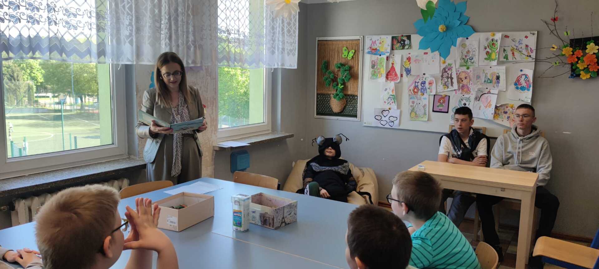 Dnia 30.04.2024 r. w naszej placówce odbyły się zajęcia czytelnicze pt. "Siła jest w nas - pobaw się ze mną i poczytaj mi" zorganizowane przez Hrubieszowską Grupę Wychowawczą 3-12 Hufca Pracy w Chełmie. Podczas spotkania młodzież przeczytała uczniom bajkę „Z muchą na luzie ćwiczymy buzię” Marty Galewskiej – Kustry. Po wysłuchaniu przygód bohaterki uczniowie klasy III szkoły podstawowej rozwiązywali zagadki dotyczące tekstu, a następnie wszyscy kolorowali obrazki związane z tematem opowieści. Było dużo śmiechu i zabawy. Głównym celem akcji głośnego czytania było kształtowanie czytelnictwa jako formy integracji społecznej oraz zdobywanie nowej wiedzy, rozwijanie wyobraźni, a także wzbogacenie słownictwa.