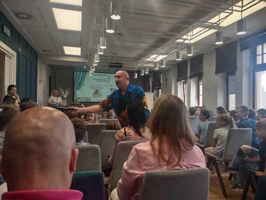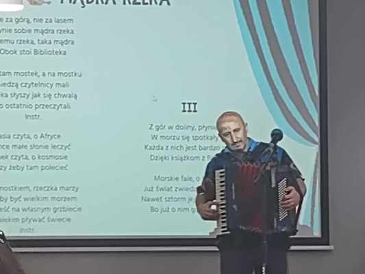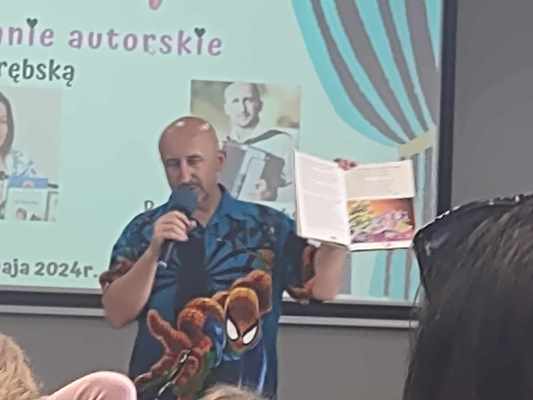 Klasa pierwsza szkoły podstawowej uczestniczyła w podsumowaniu akcji ,,Czytam na 7" zorganizowanej przez Miejską Bibliotekę Publiczną Hrubieszowskie Centrum Dziedzictwa im. Krystyny i Stefana Duchateu. Wspaniałą nagrodą dla wszystkich uczestników akcji było spotkanie z autorką i ilustratorką książek dla dzieci Edytą Zarębską oraz jej mężem Robertem, który okazał się nieocenionym animatorem atrakcji muzyczno - ruchowych dla dzieci. Artyści zachwycili uczniów ogromnym talentem pedagogicznym oraz kreatywnością. Cudownie było wziąć udział w tak wartościowym działaniu.